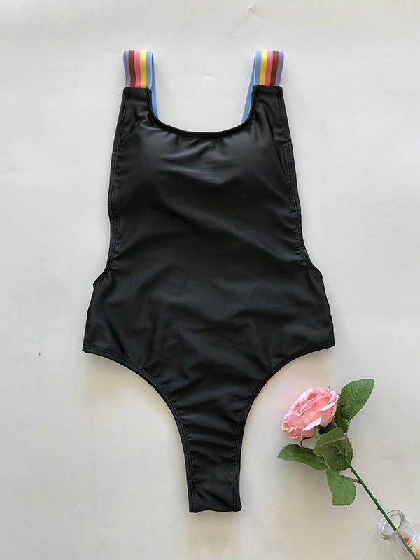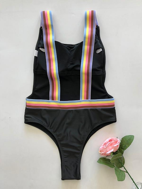Colorful Straps Backless One-piece Swimwear