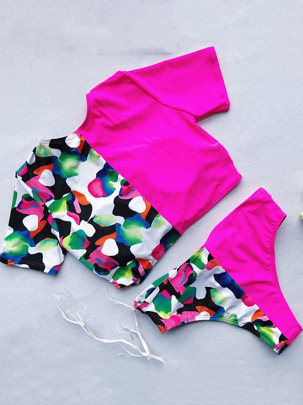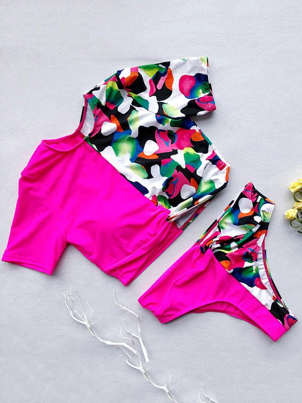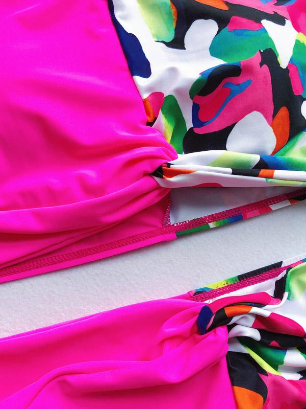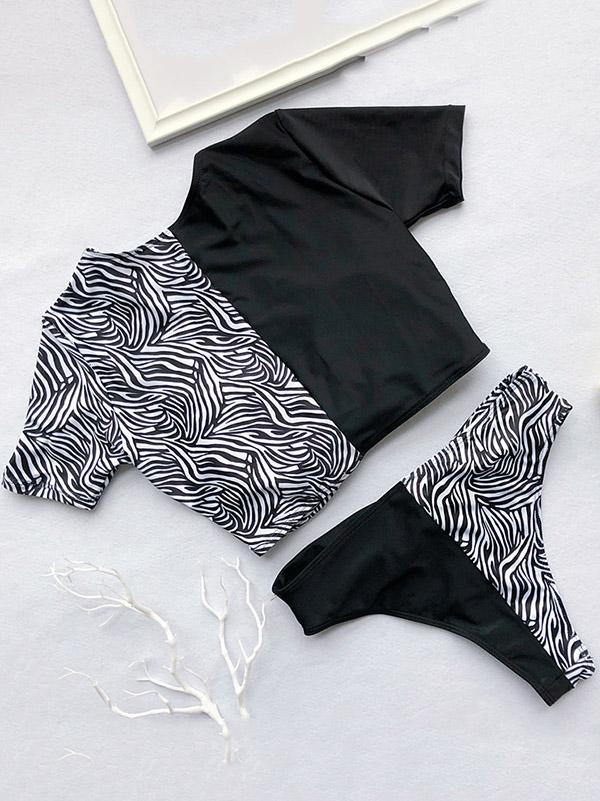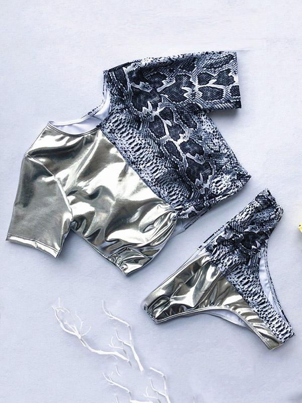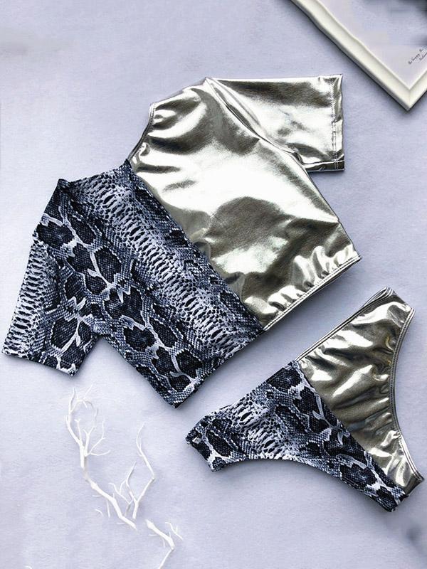 Contrast Snakeskin Printing Semi Tankini Swimsuit