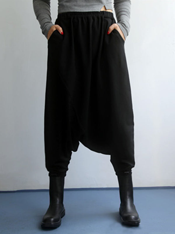 Cool Solid Color Split-Joint Elasticity Waist Wide Legs Harem Pants