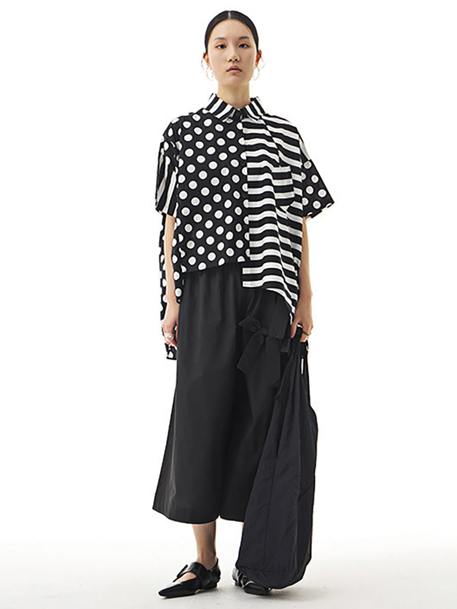 Plus Size Women Cotton Stripe Dot Loose Irregular Shirt