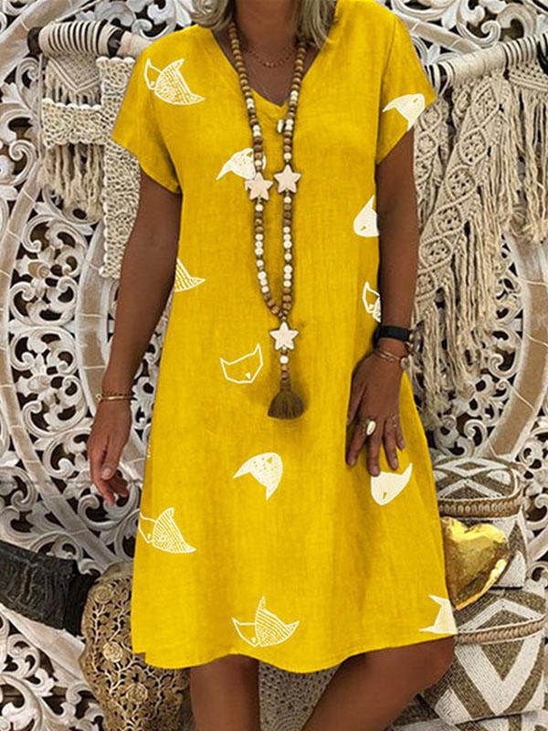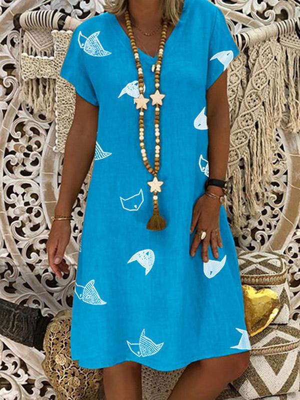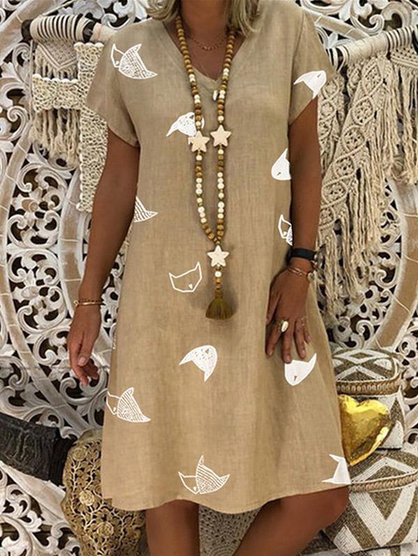 Cozy Printed V-neck Short Sleeves Midi Dress