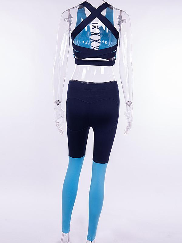 Criss Cross Padded Bra&Tone Elastic Gym Leggings Suits