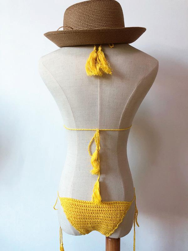 Crochet Solid Color Triangles Split Bikini Swimsuit