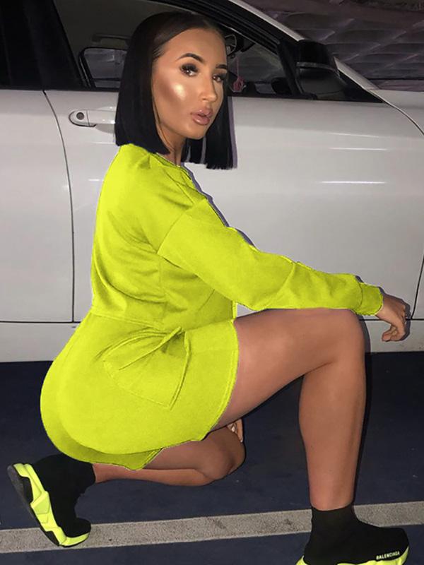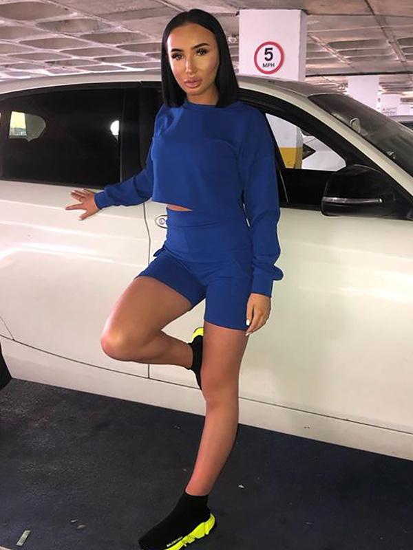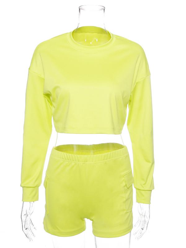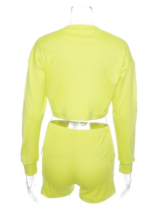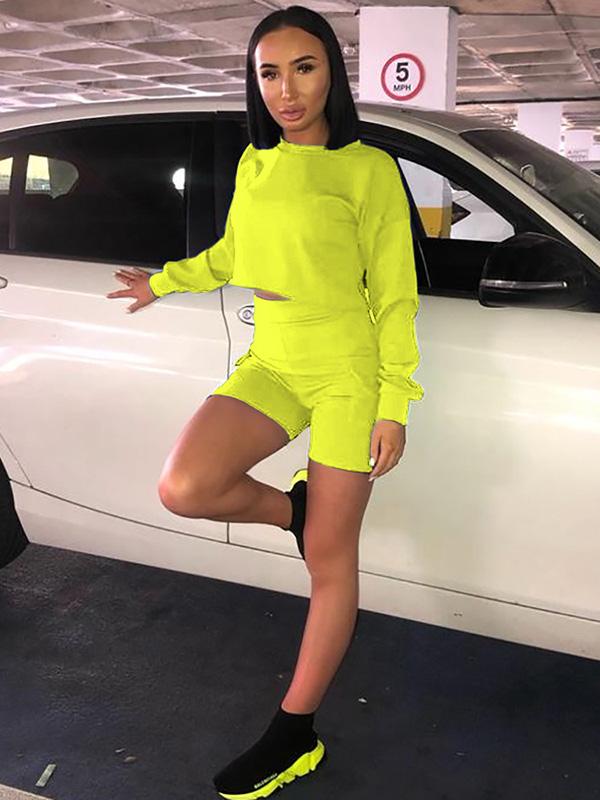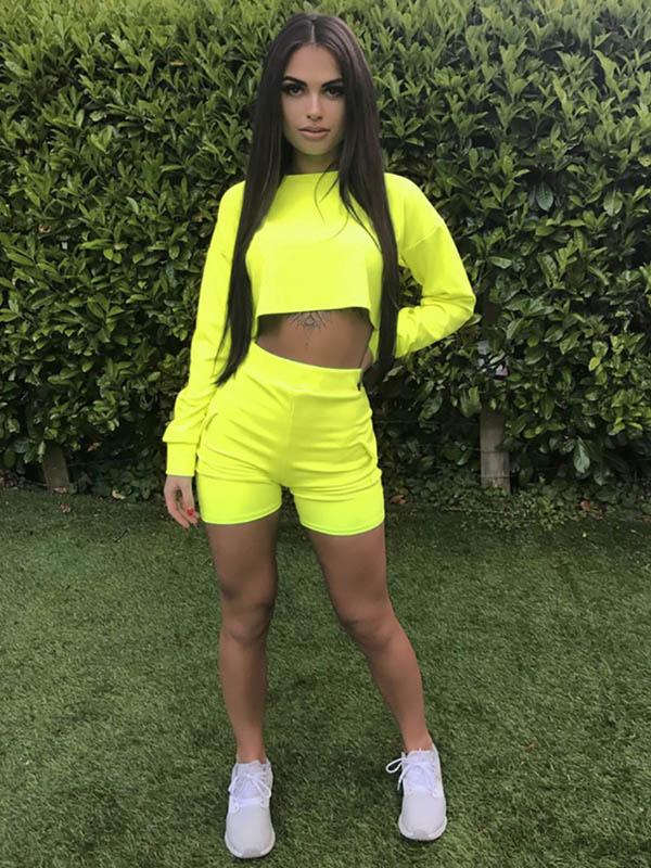 Cut Out Long Sleeve Tees And Shorts Suits