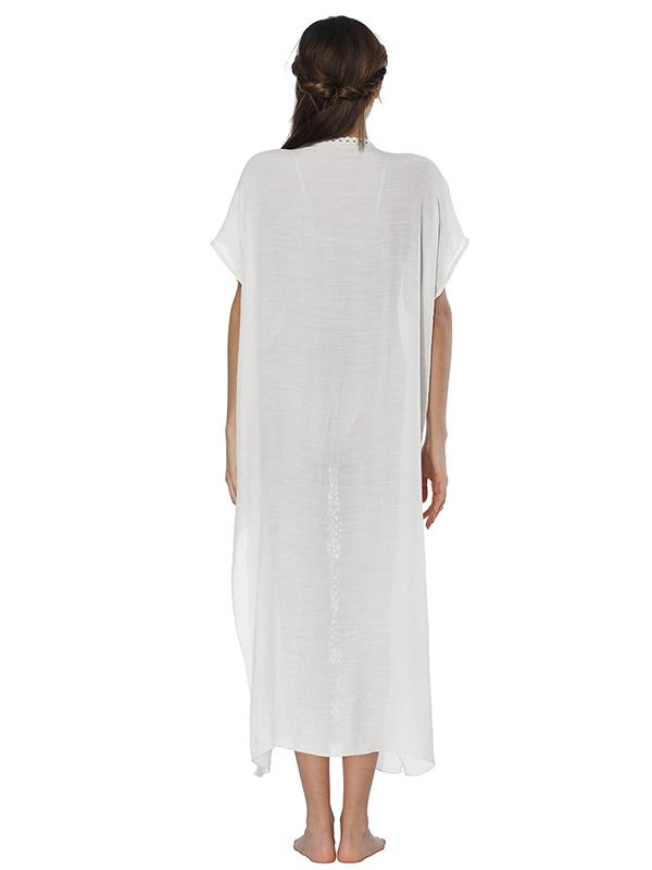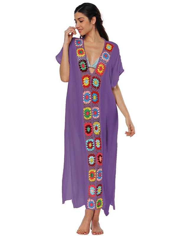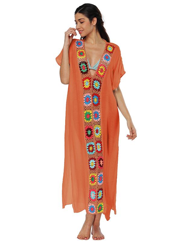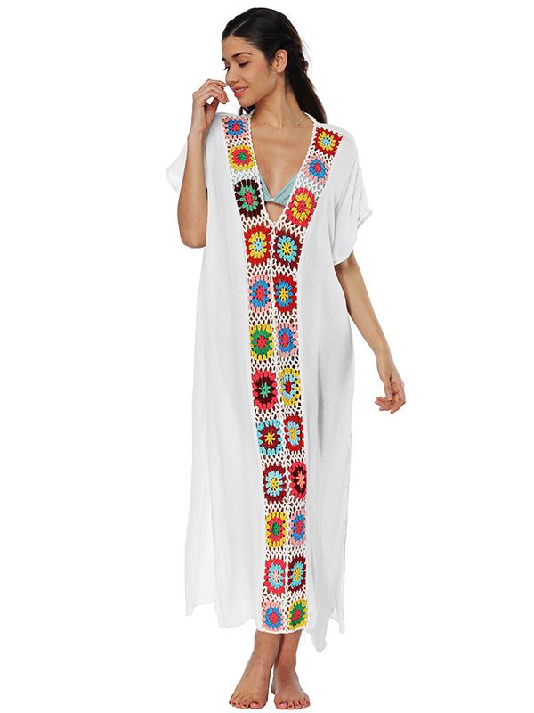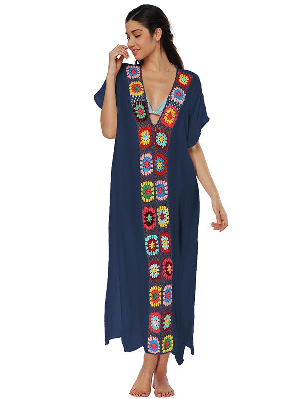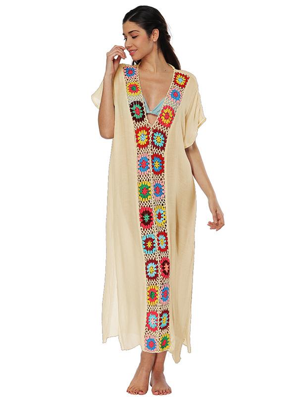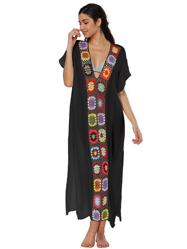 Deep V-neck Embroidered Split-joint Beach Maxi Dresses