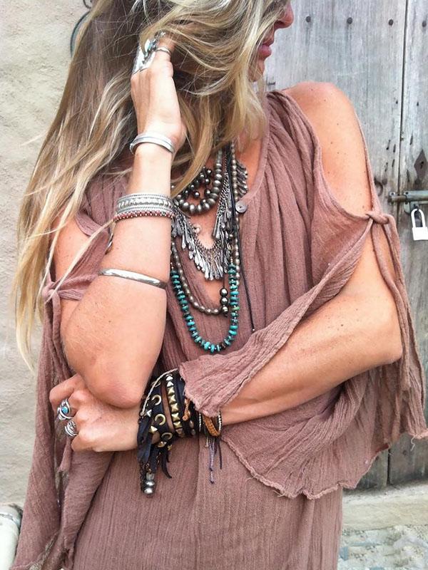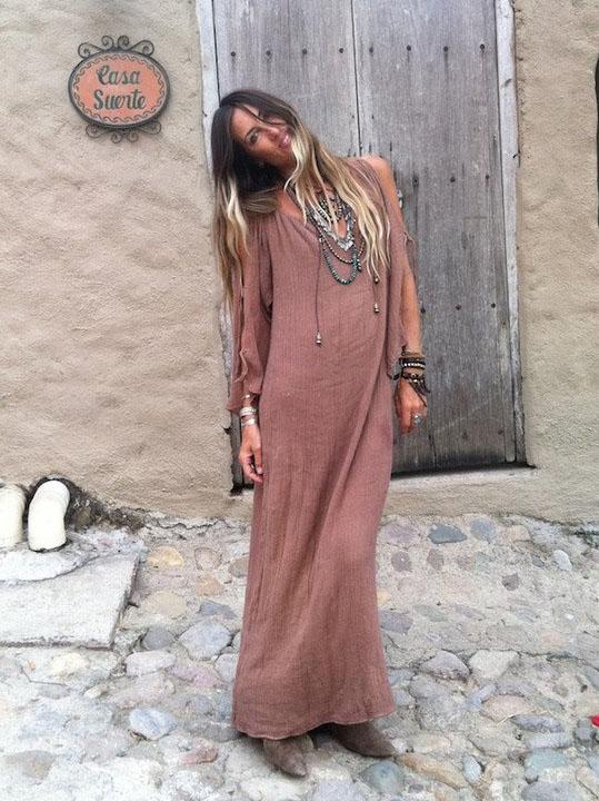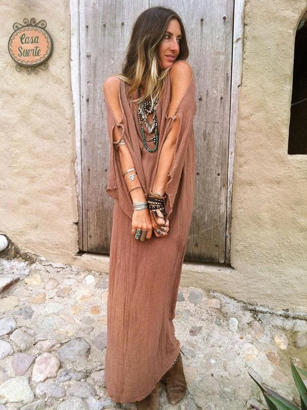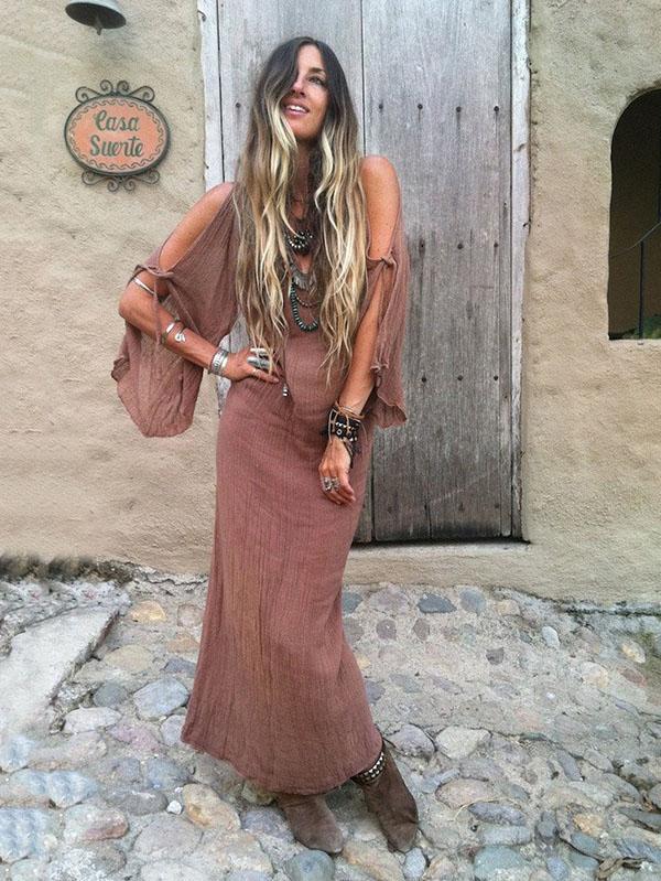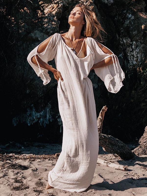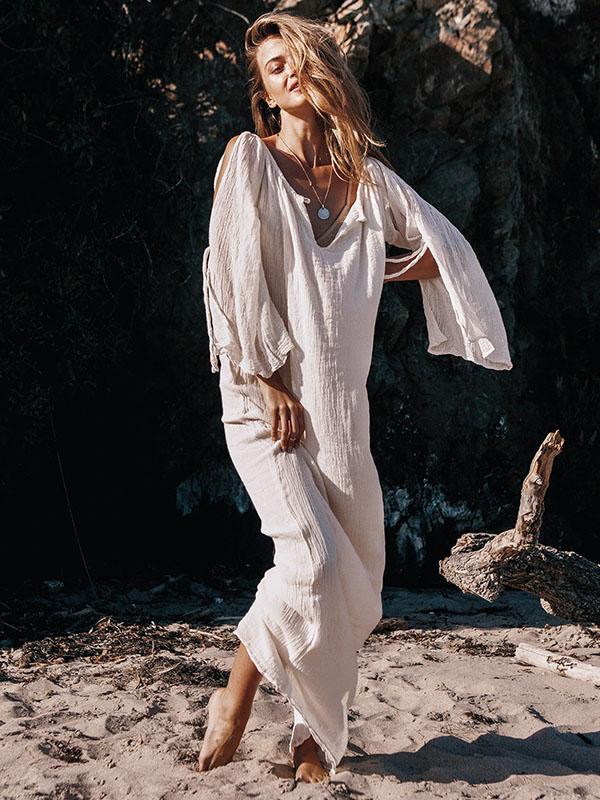 Deep V-neck Off-shoulder Flare Sleeve Long Dresses