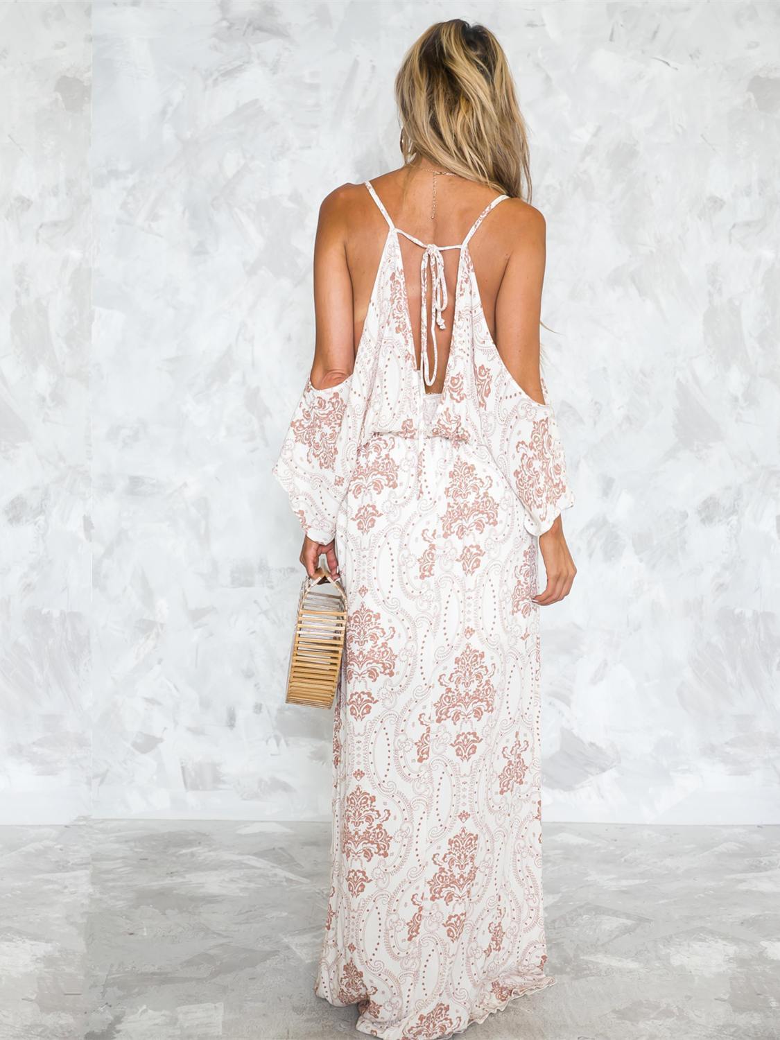 Deep V-neck Spaghetti-neck Floor Maxi Dress