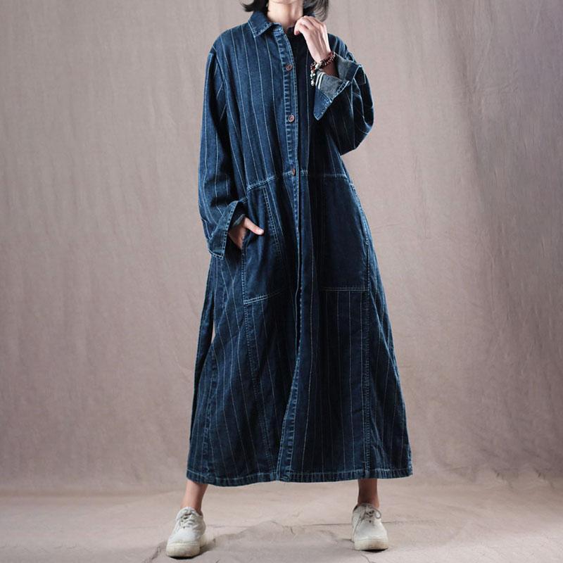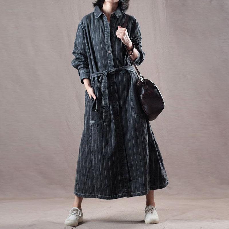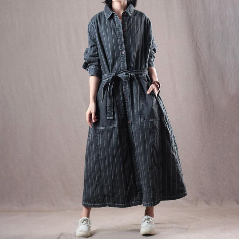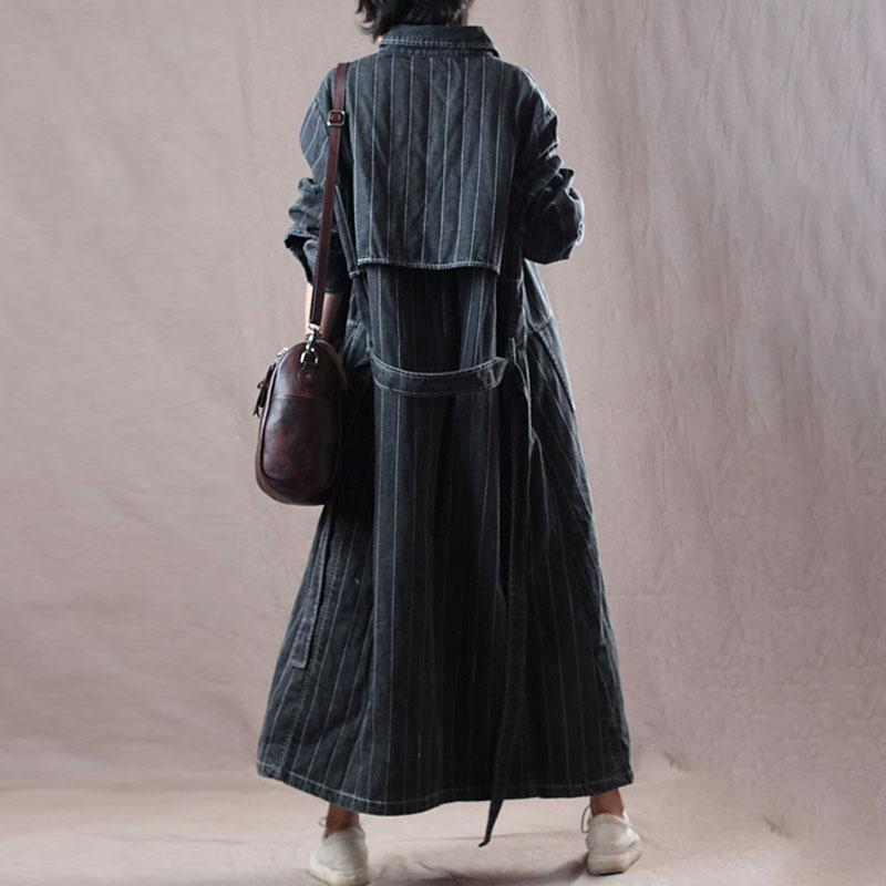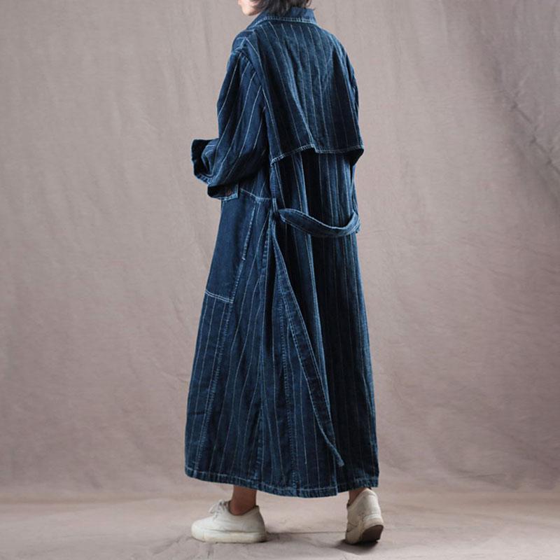 Denim Loose Long Belt Women Coat
