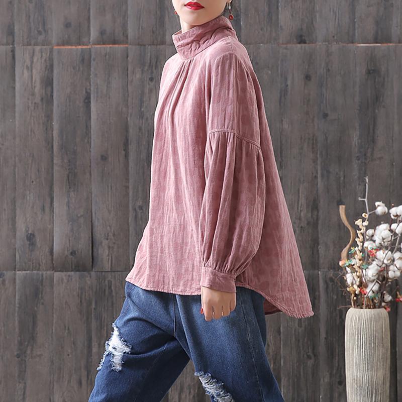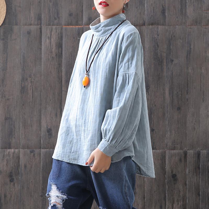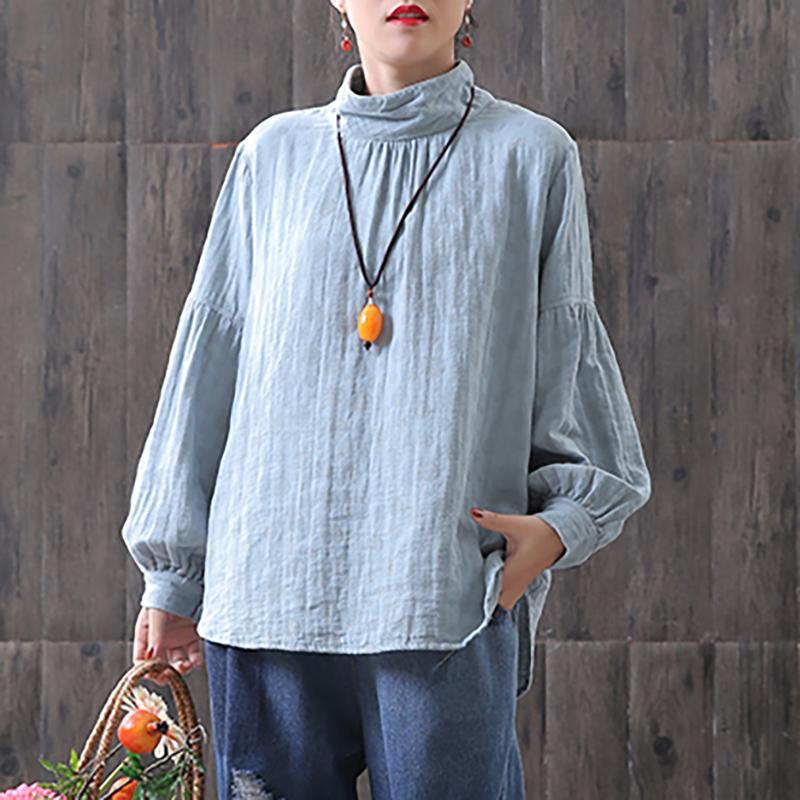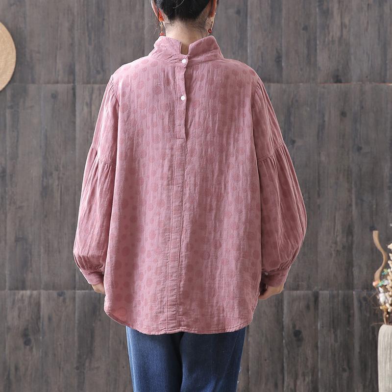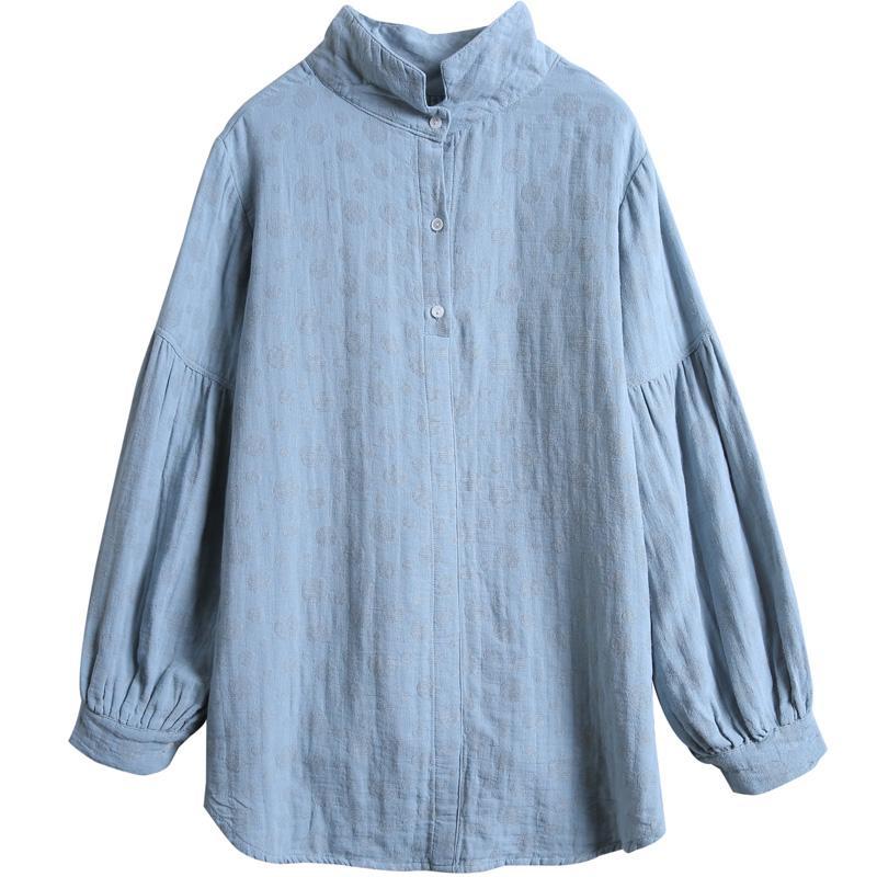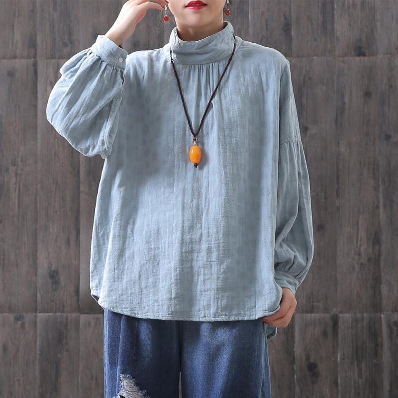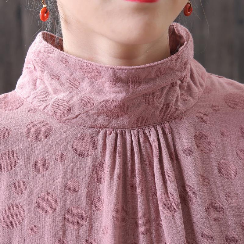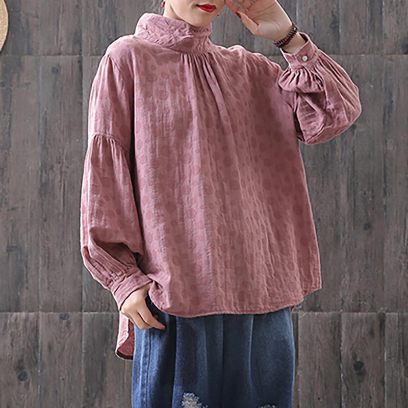 Dots Women Turtleneck Lantern Sleeve Blouse