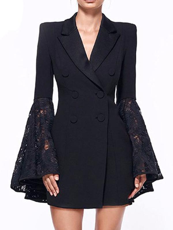 Double Breasted Lace Flare Sleeves Blazer Dresses