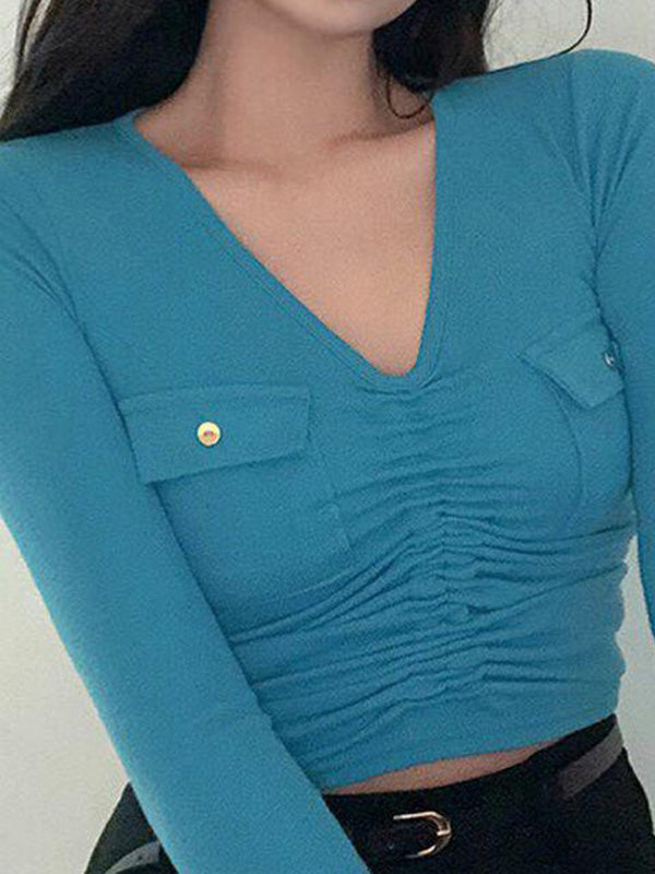 Drawstring Pockets Long Sleeves Drawstring Tees