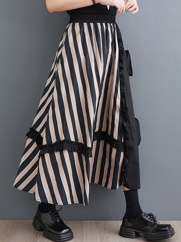 Elastics High Waisted Loose Flower-Embellished Split-Joint Skirts Bottoms