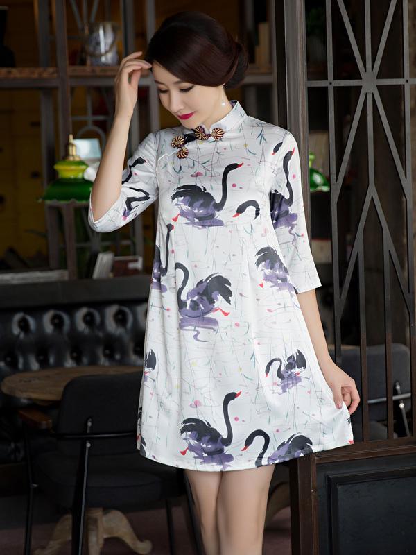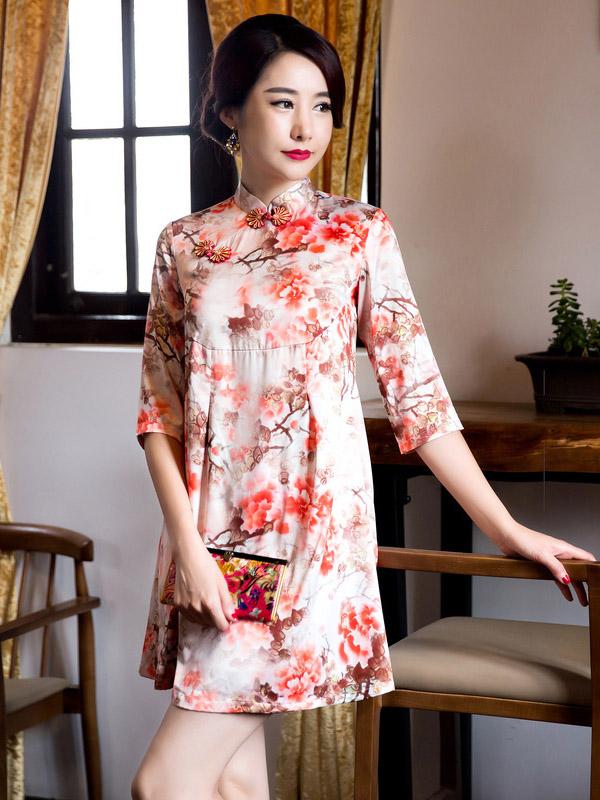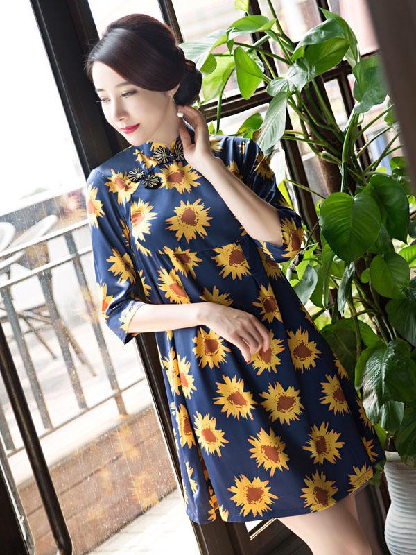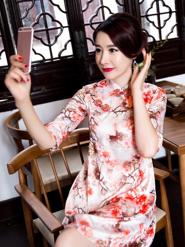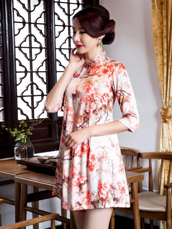 Elegance Frog Half Sleeves Stand Collar Slim Short Cheongsam