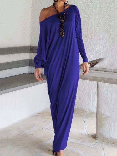Elegant Solid Color Long Sleeve Round Neck Loose Maxi Dress