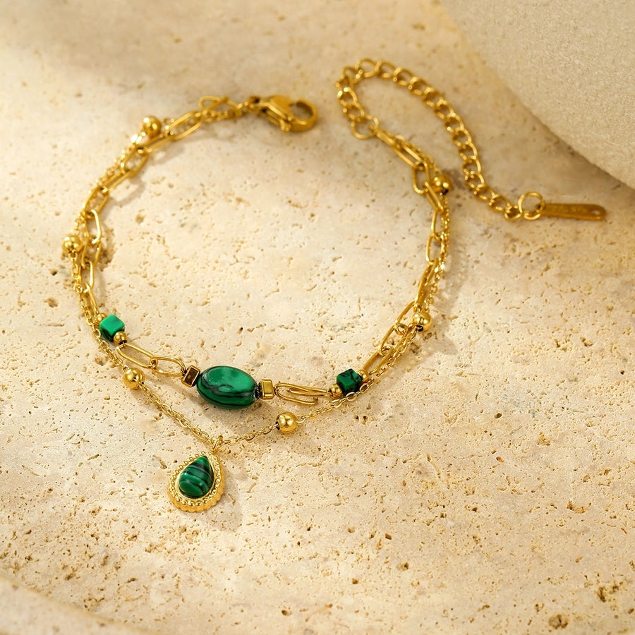 Elegant Water Droplets 304 Stainless Steel 18K Gold Plated Natural Stone Paperclip Chain cable chain Bracelets In Bulk Stainless Steel Bracelets