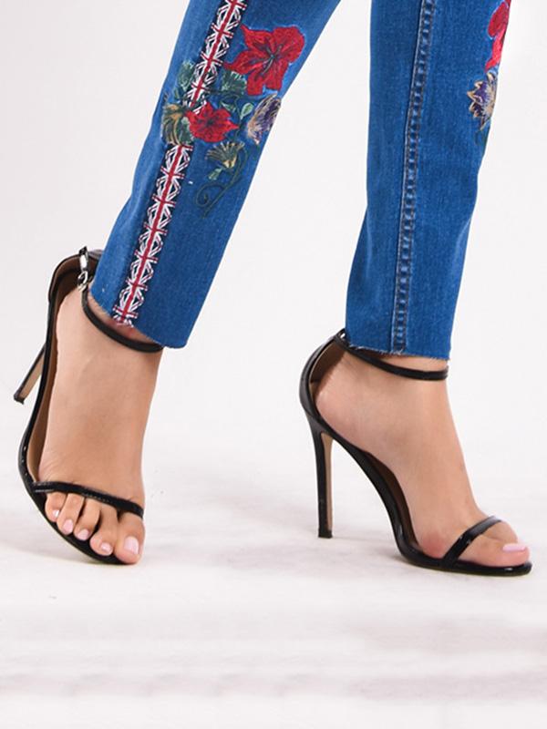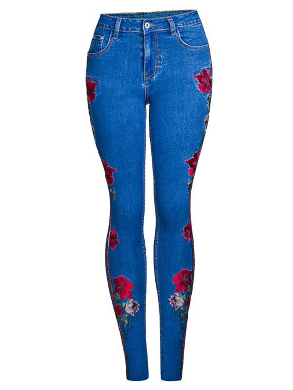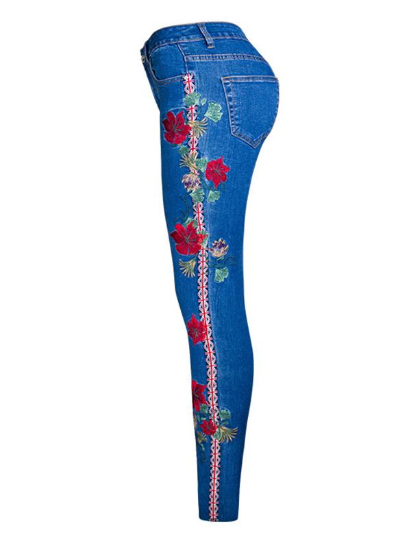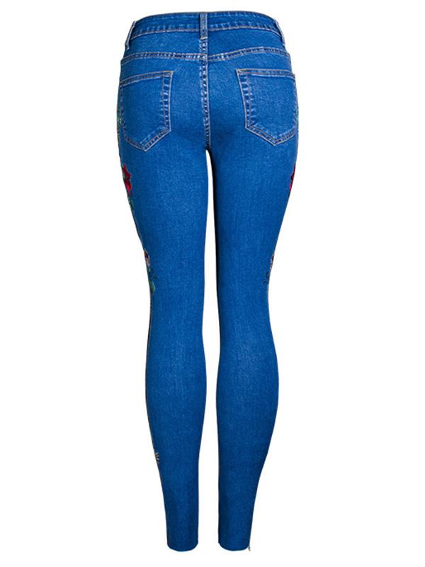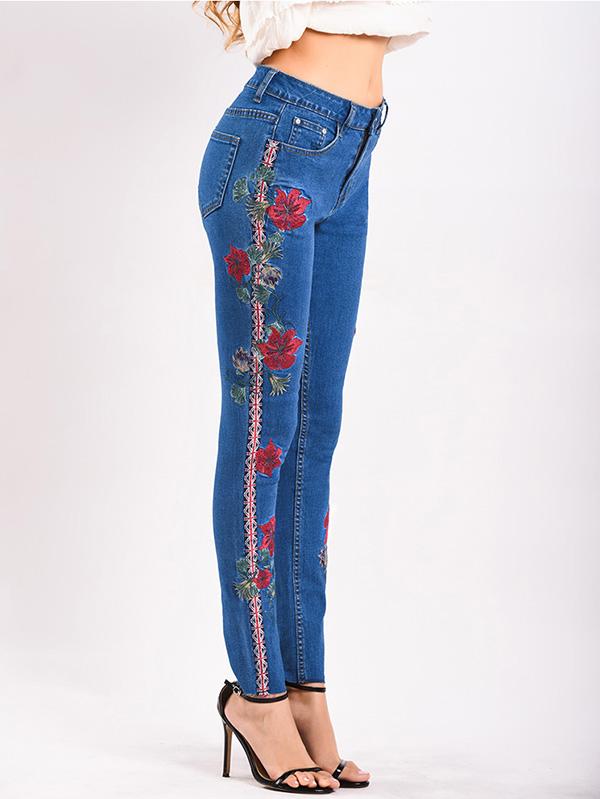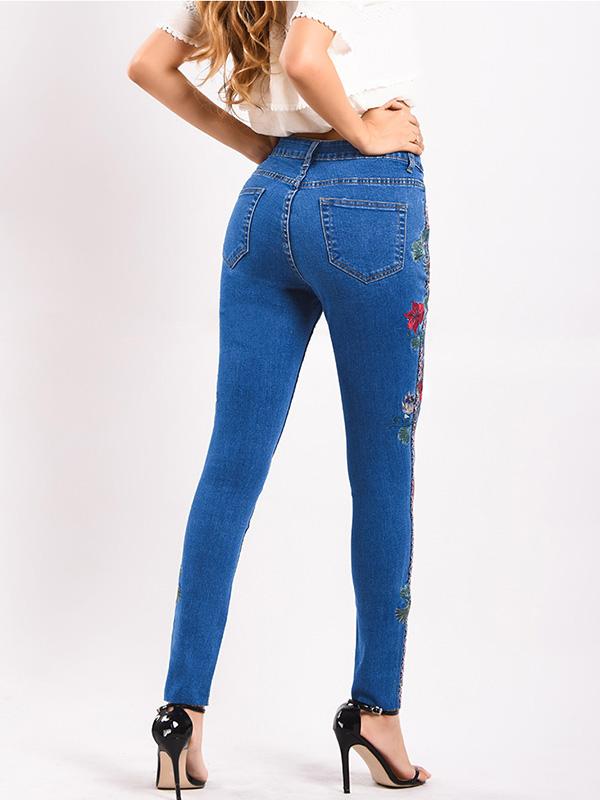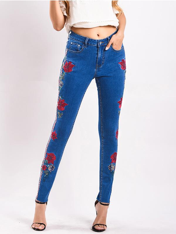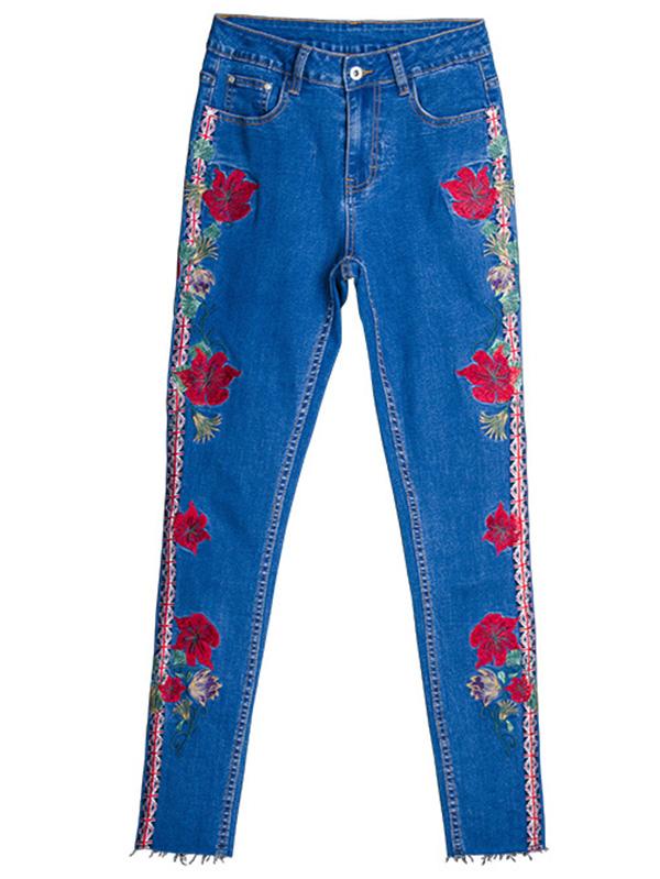 Embroidered Elastic Jeans Pants Bottoms