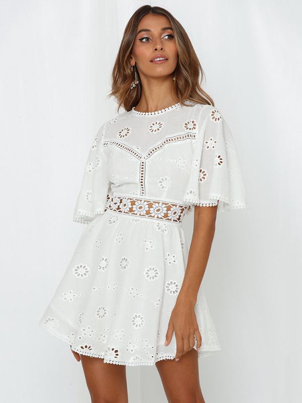 Embroidered Lace Hollow Split-joint Mini Dresses