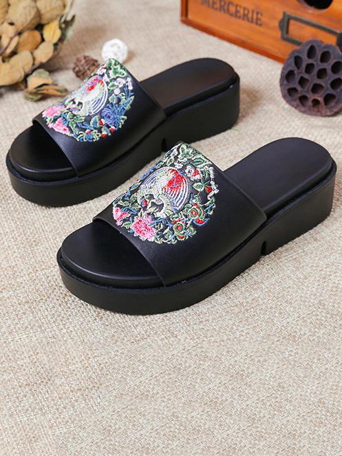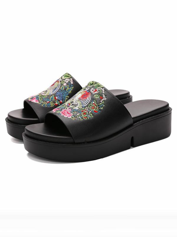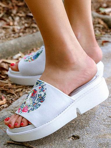 Embroidered Peep-toe Slides Shoes
