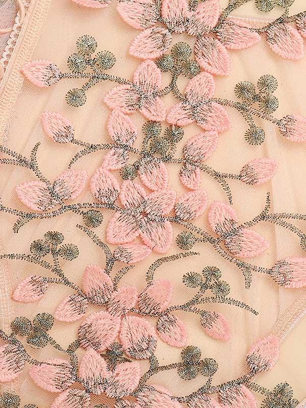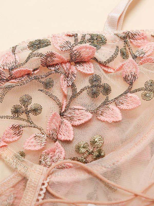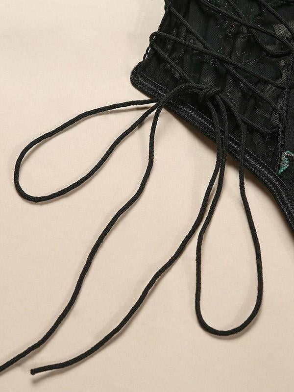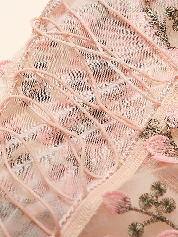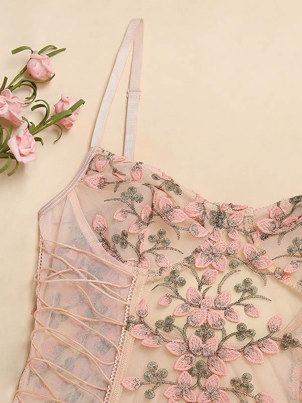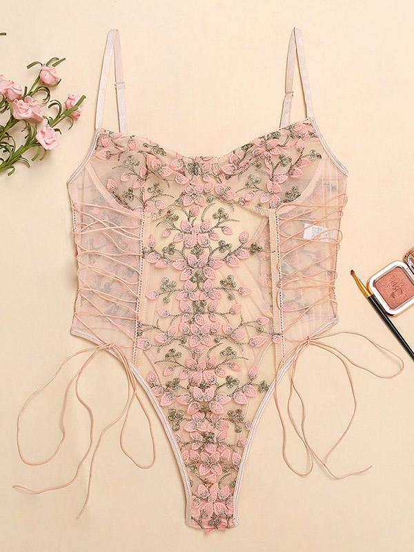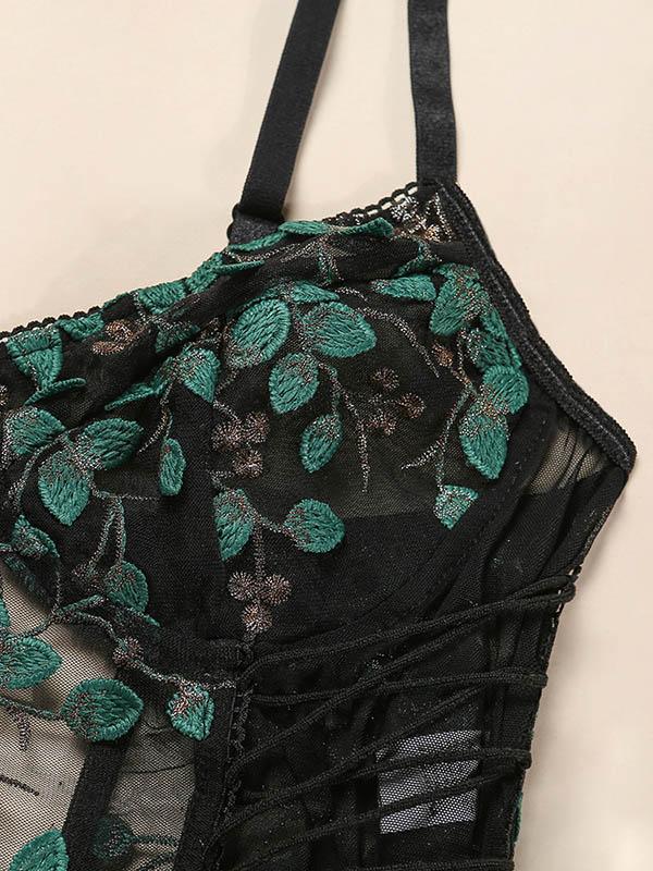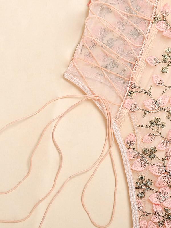 Embroidered See-Through Bandage Bodysuit Lingerie