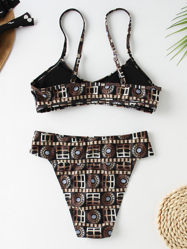 Ethnic Printed High-Waisted Backless Bikini Swimwear