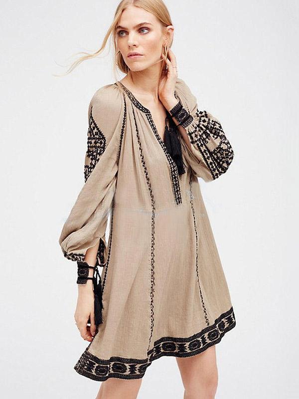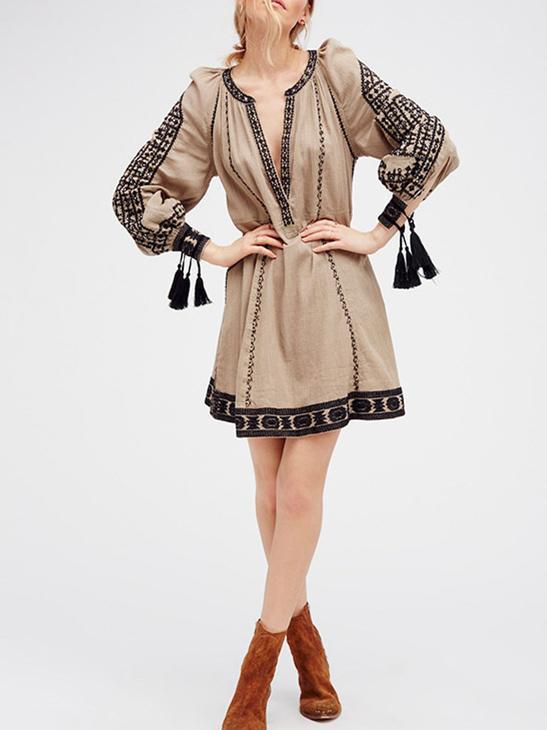 Ethnic-style Embroidery Tassels V-neck Mini Dress