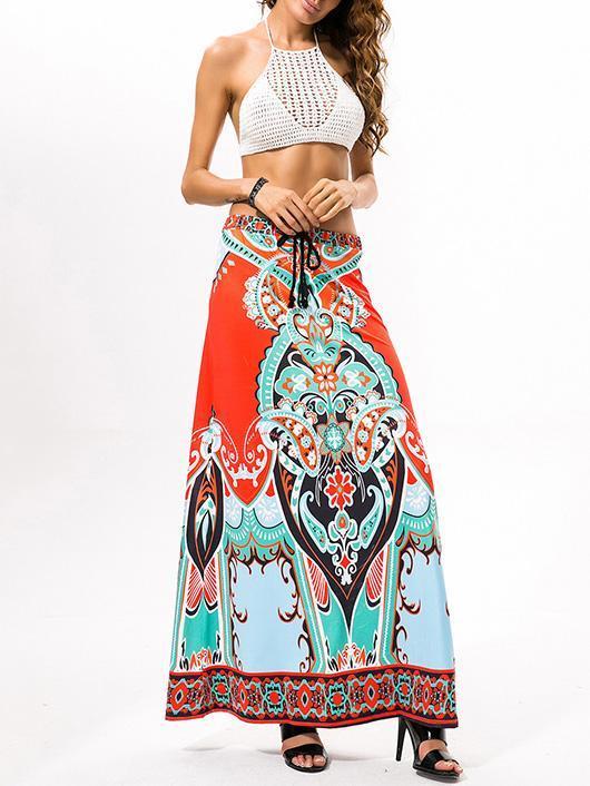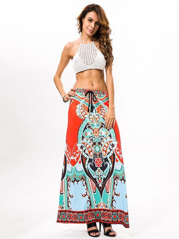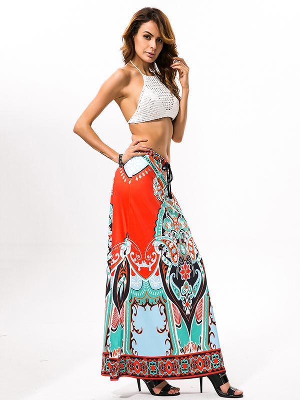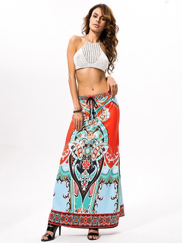Ethnic-style Floral Big Hemline Skirt Bottoms