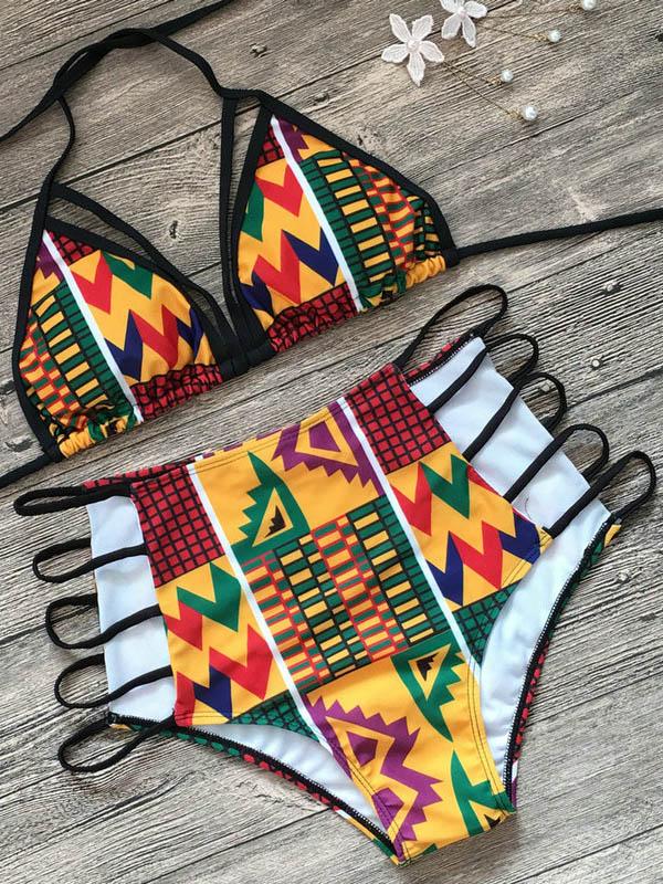 Ethnic Triangle Top With High Cut Panty Bikini Set
