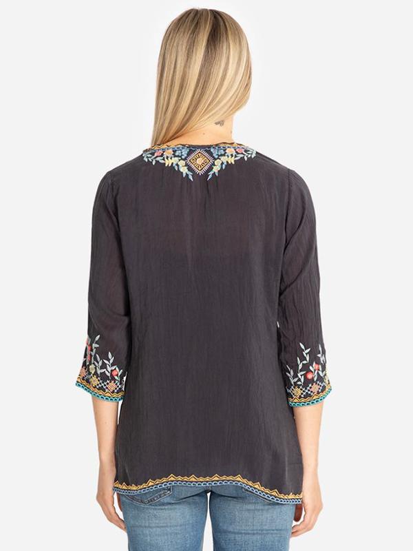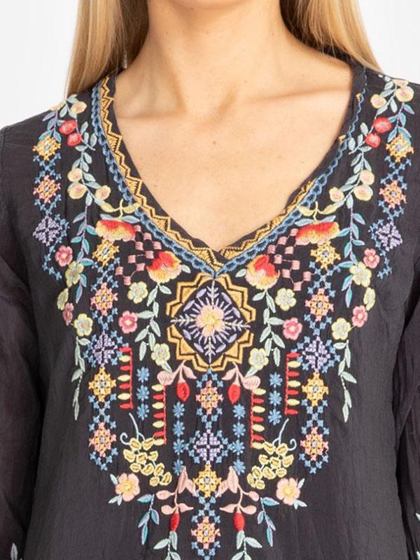 Exquisite Floral Embroidery Medium Sleeves Blouses