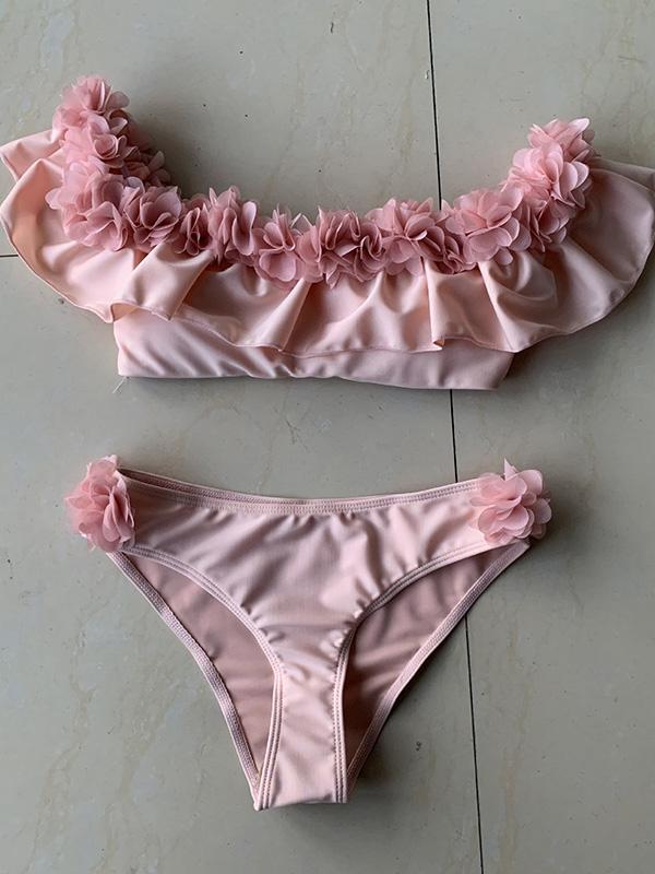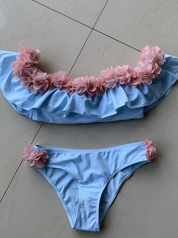 Falbala Flower Decoration Bikinis Swimwear