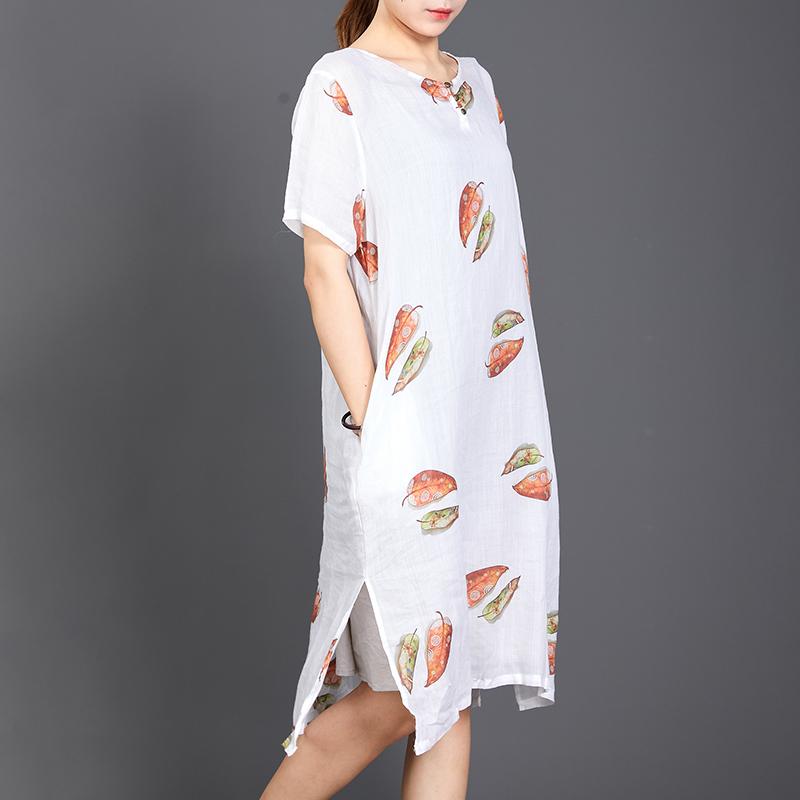 Fallen Leaves Split Hem Comfortable Dress