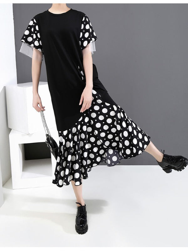 FALSE TWO POLKA-DOT SPLICING FALBALA DRESS