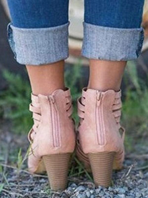 Fashion Bandage Mid-heel Ankle Boots Shoes