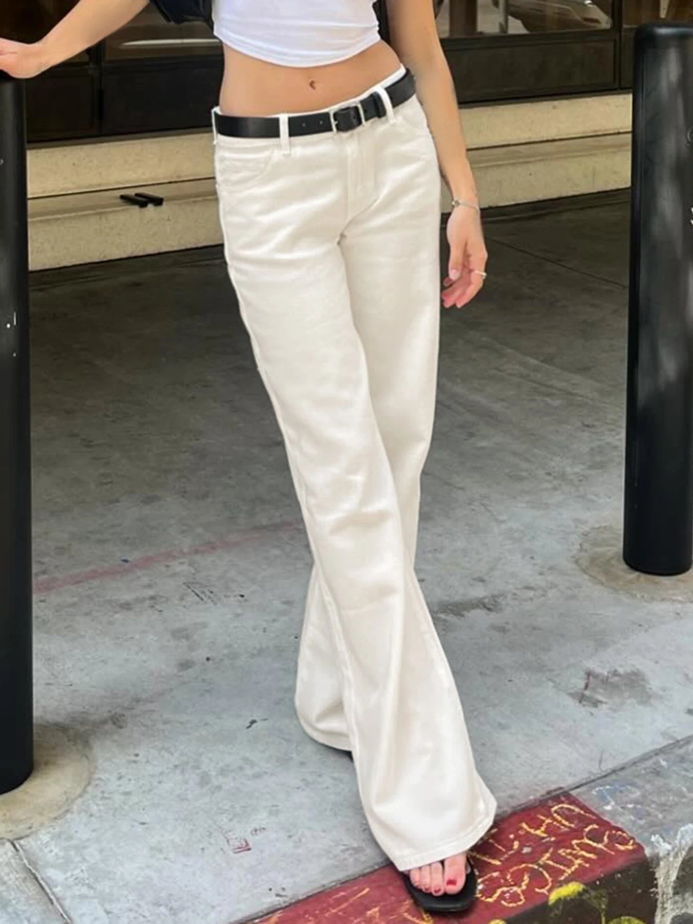 fashion Basic Aesthetic Casual Slim Denim Pants Low Waisted Fashion Y2K Jeans Streetwear Harajuku Pockets Cotton Bottoms