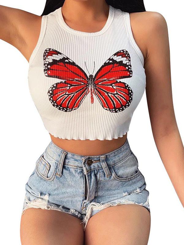 Fashion Butterfly Printed Wrap Sleeveless Vest Top