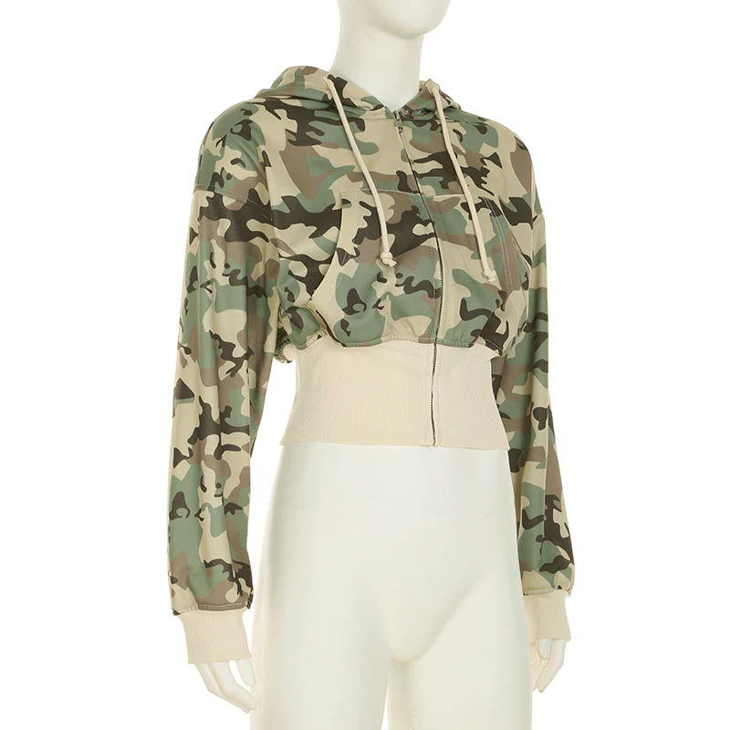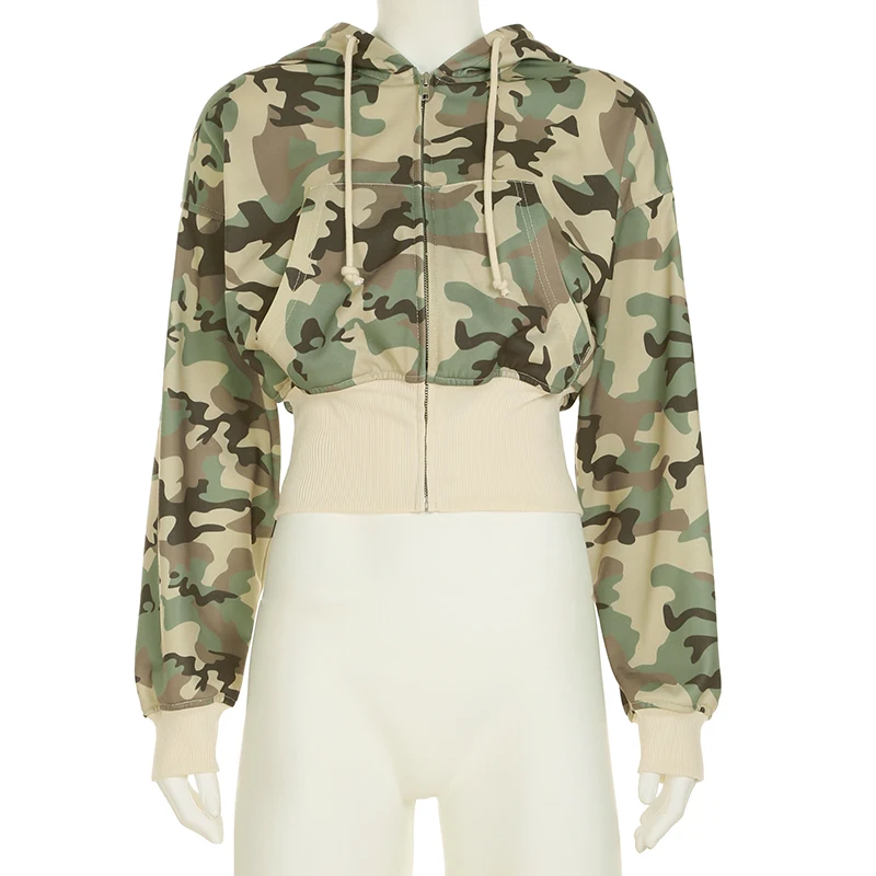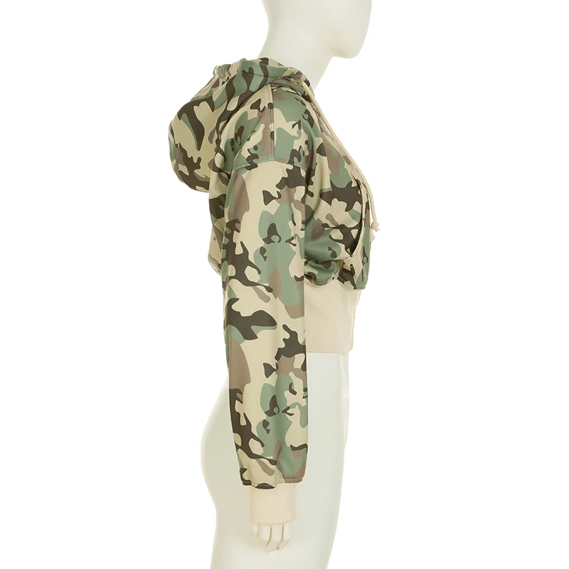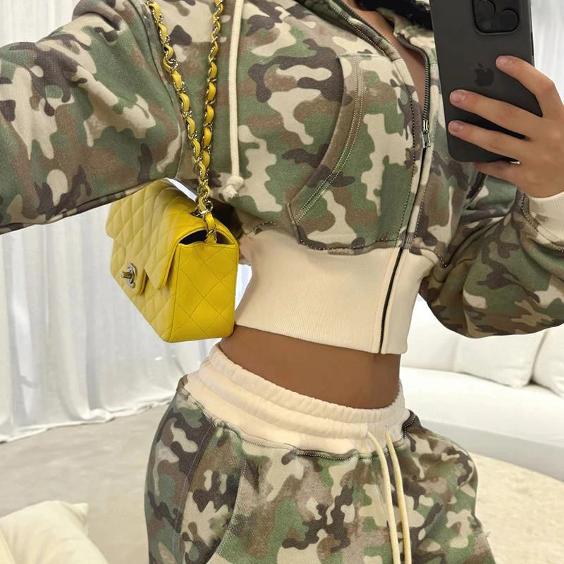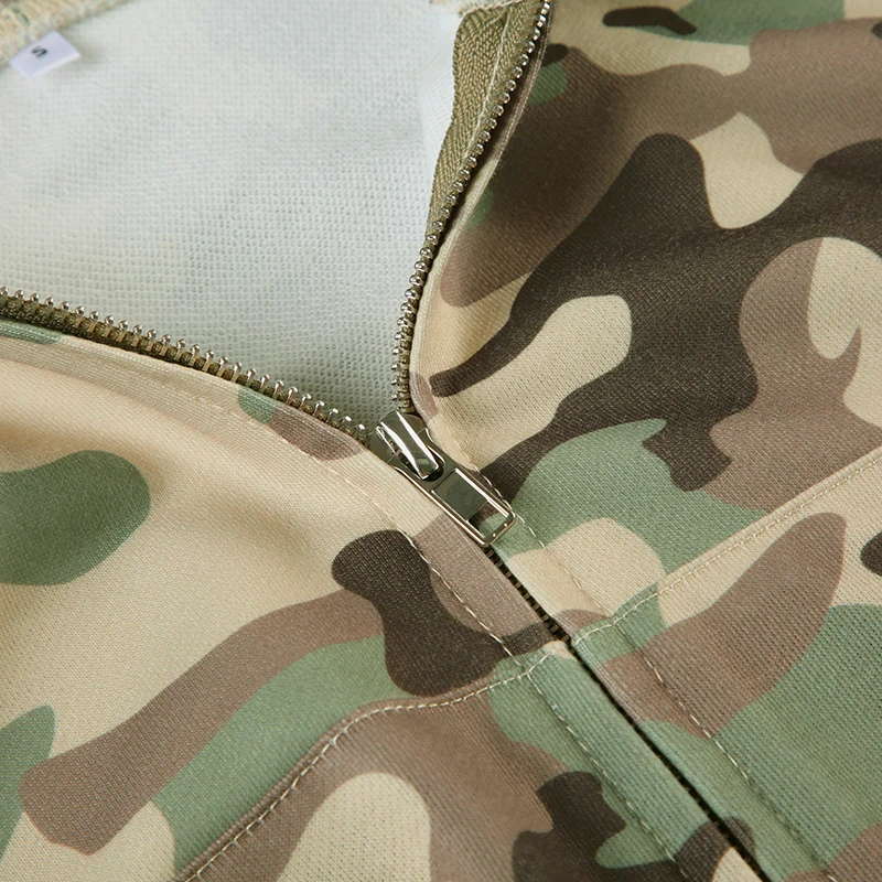 fashion Camouflage Hoodie Coats for Women Chic Fashion Front-pockets Casual Sweatshirts Winter Long Seelves Cute Jackets