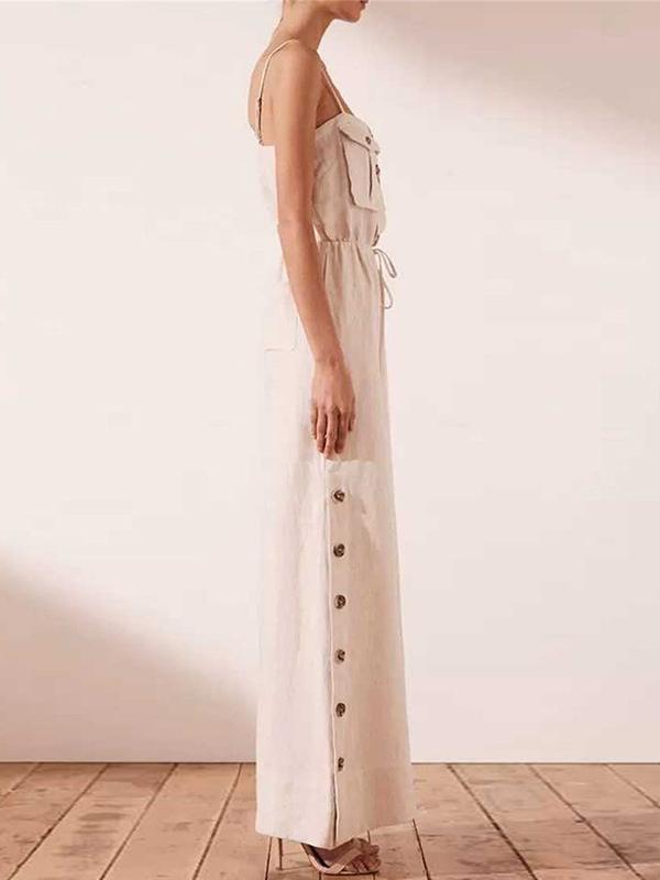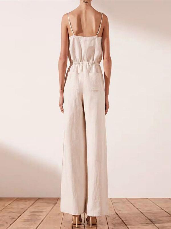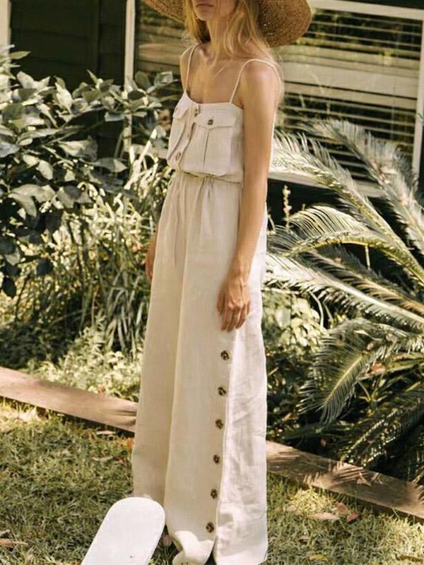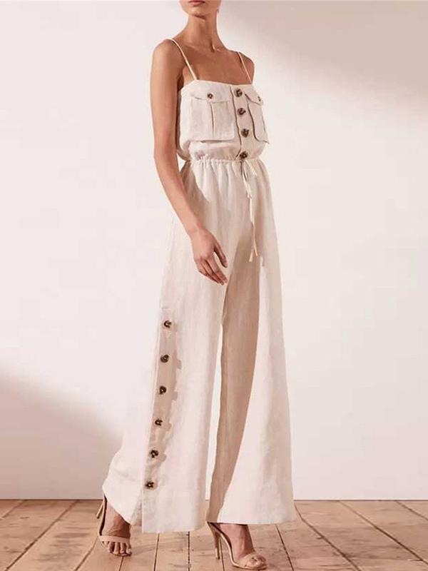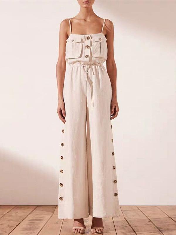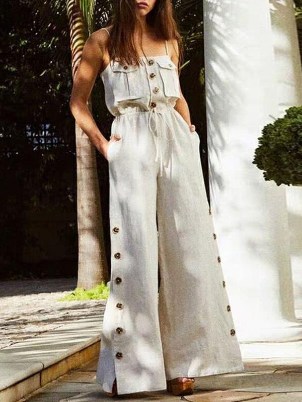 Fashion Casual Spaghetti-neck Fastener Jumpsuits