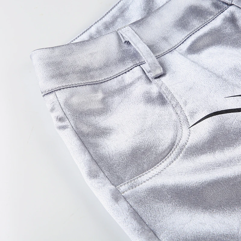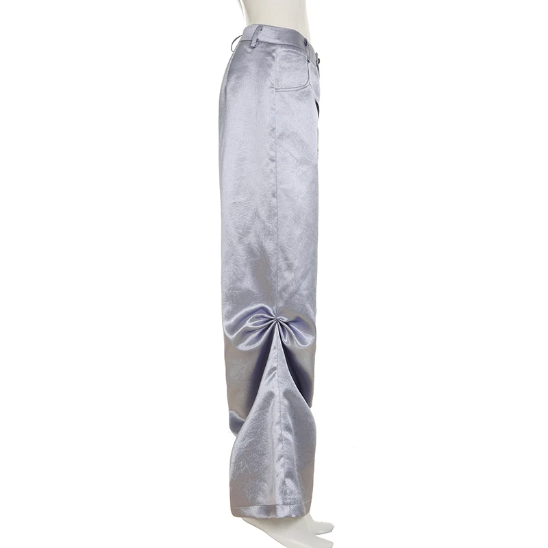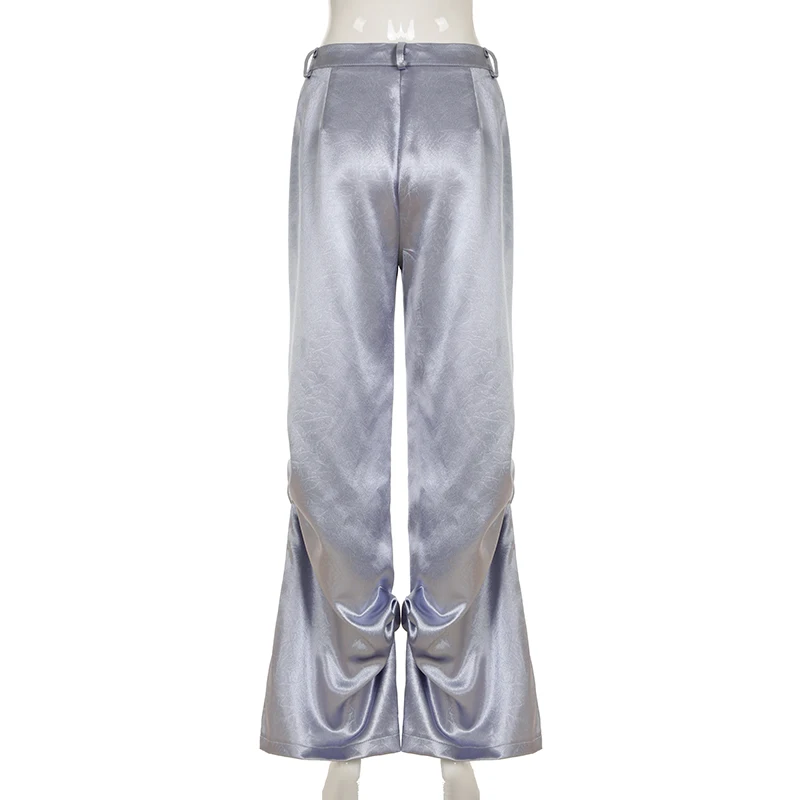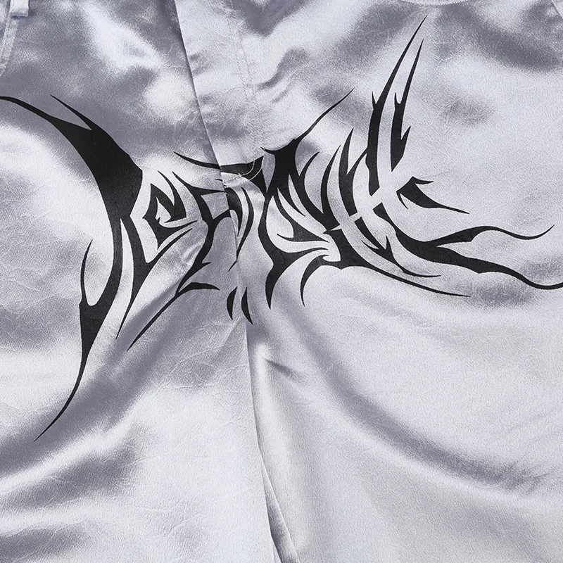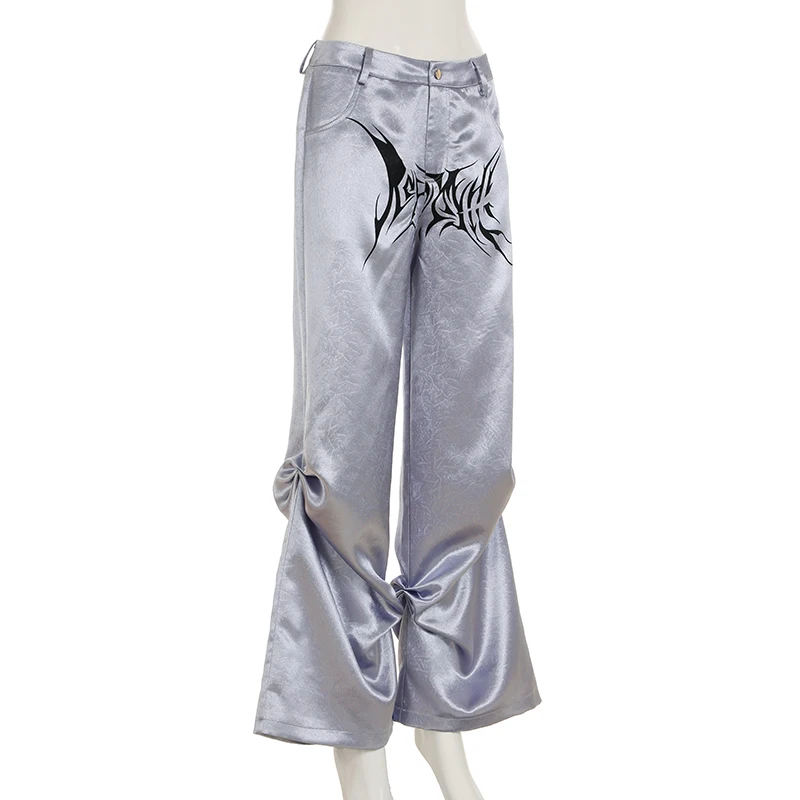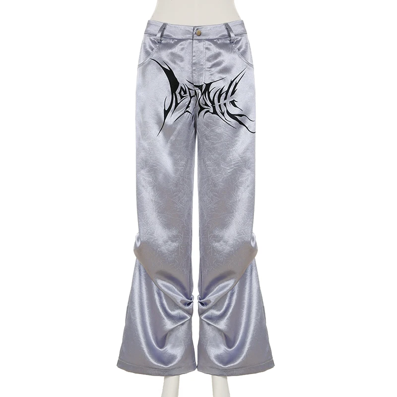 fashion Chic Casual Satin Button Loose Pants Fashion Korean Harajuku Women's Trousers Vintage Print Y2K Grunge Streetwear