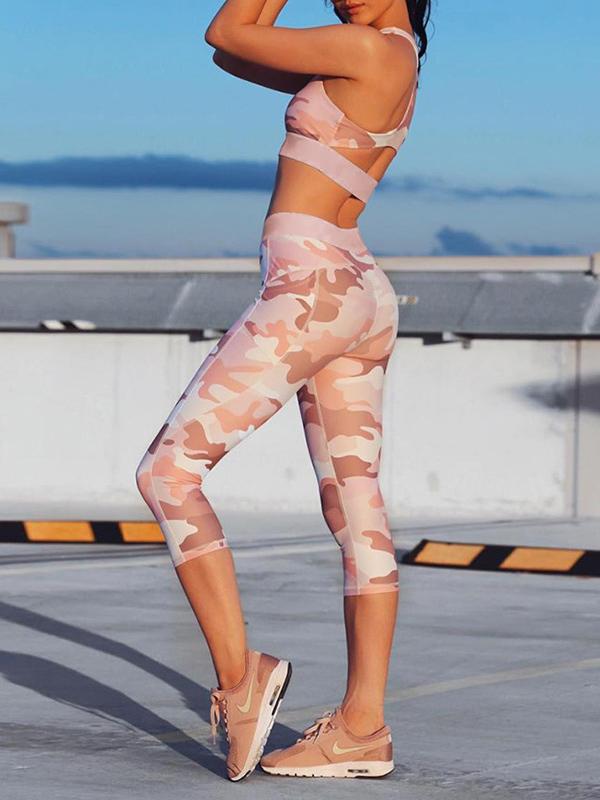 Fashion Color-Block Printed Yoga Suits