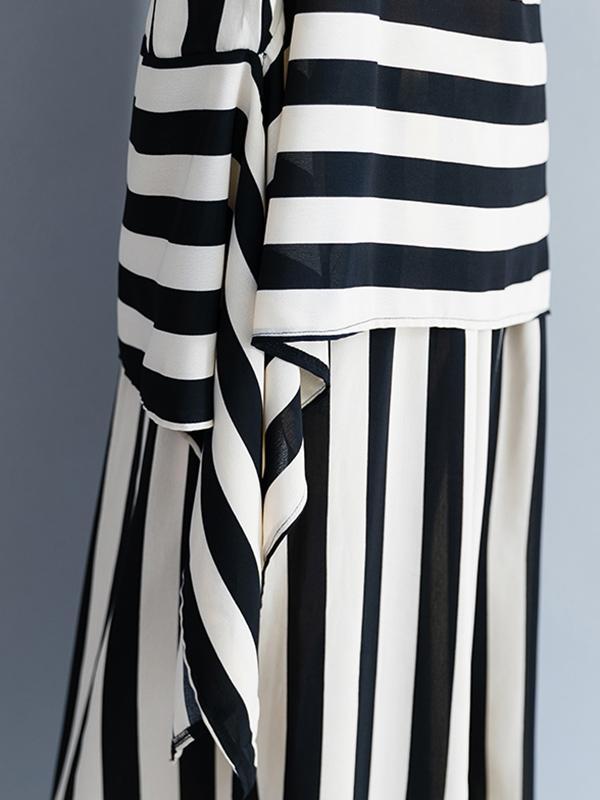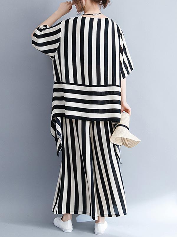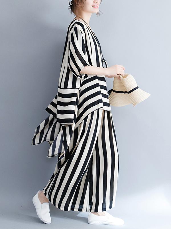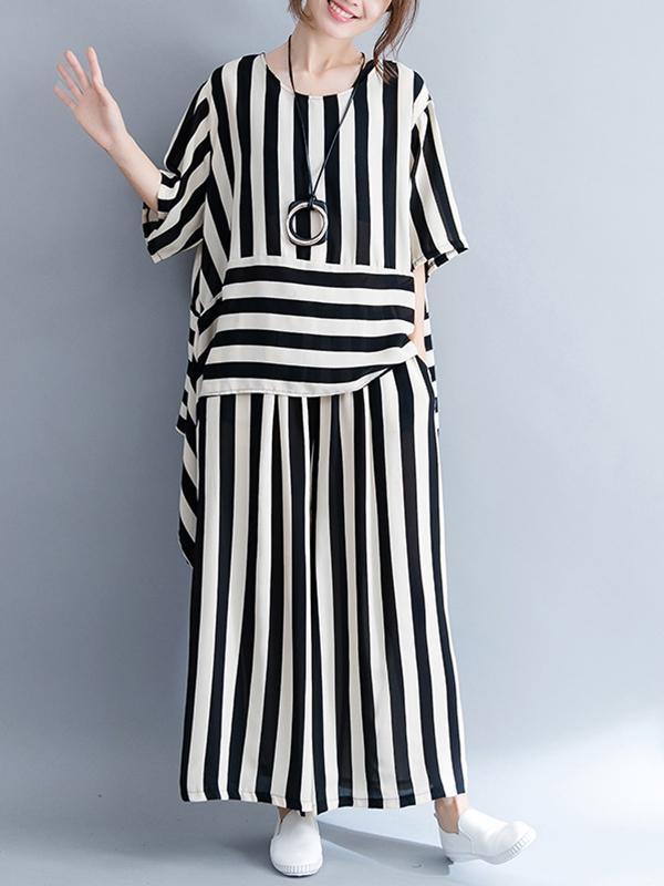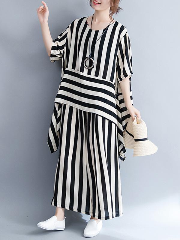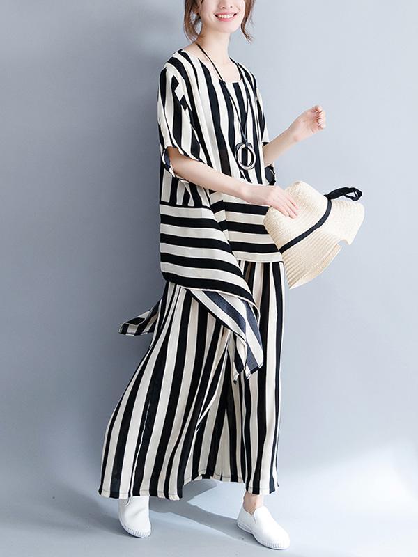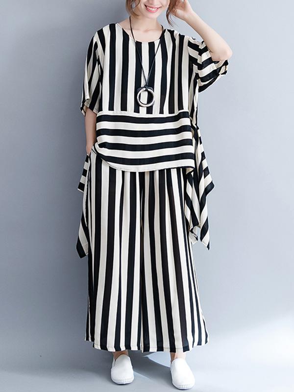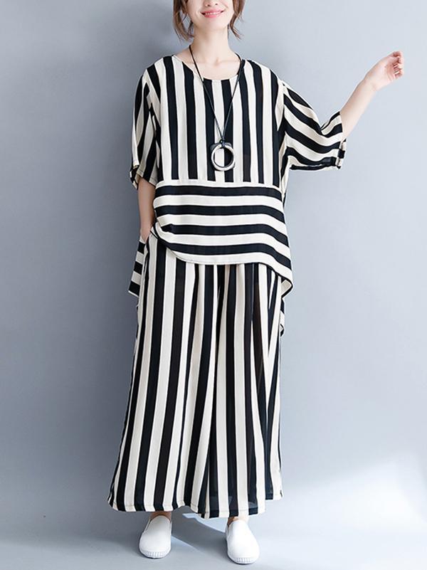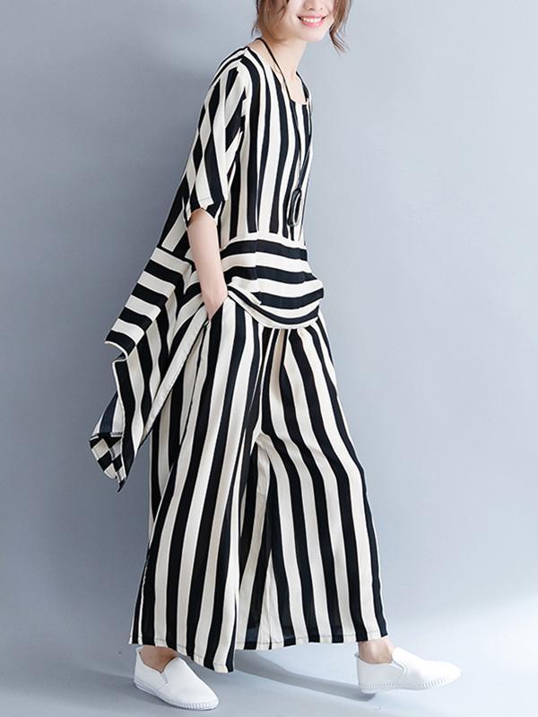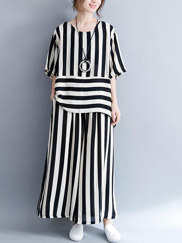 Fashion Combo Suit from T-shirt and Pants in White and Black Stripes