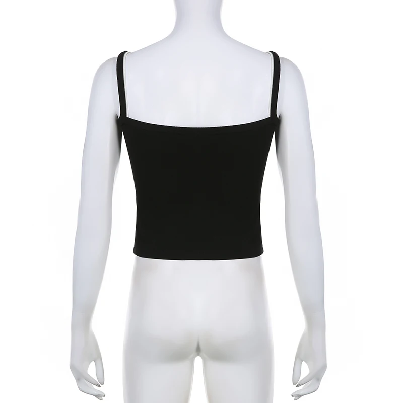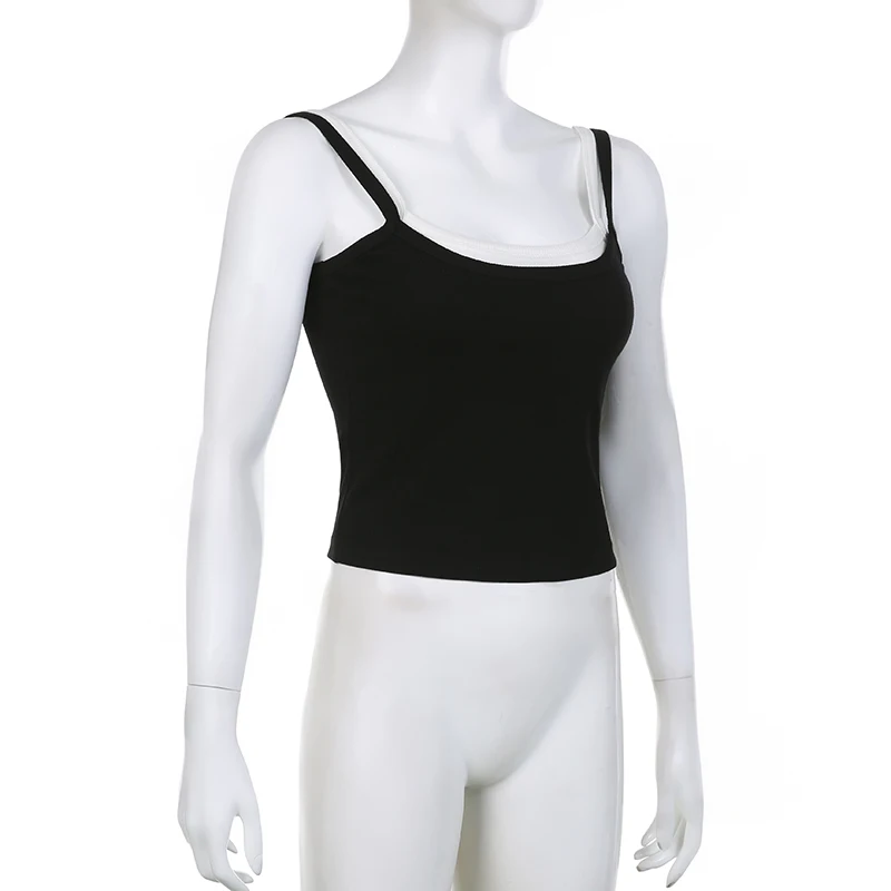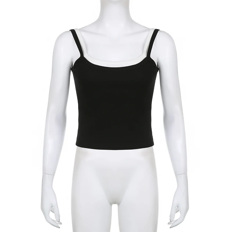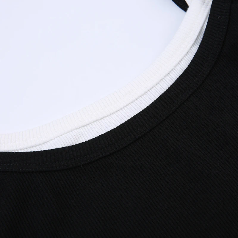 fashion Crewneck Black and White Patchwork Tops Fashion Casual Summer Cute Shirts Sleeveless Harajuku Vintage Women Tees