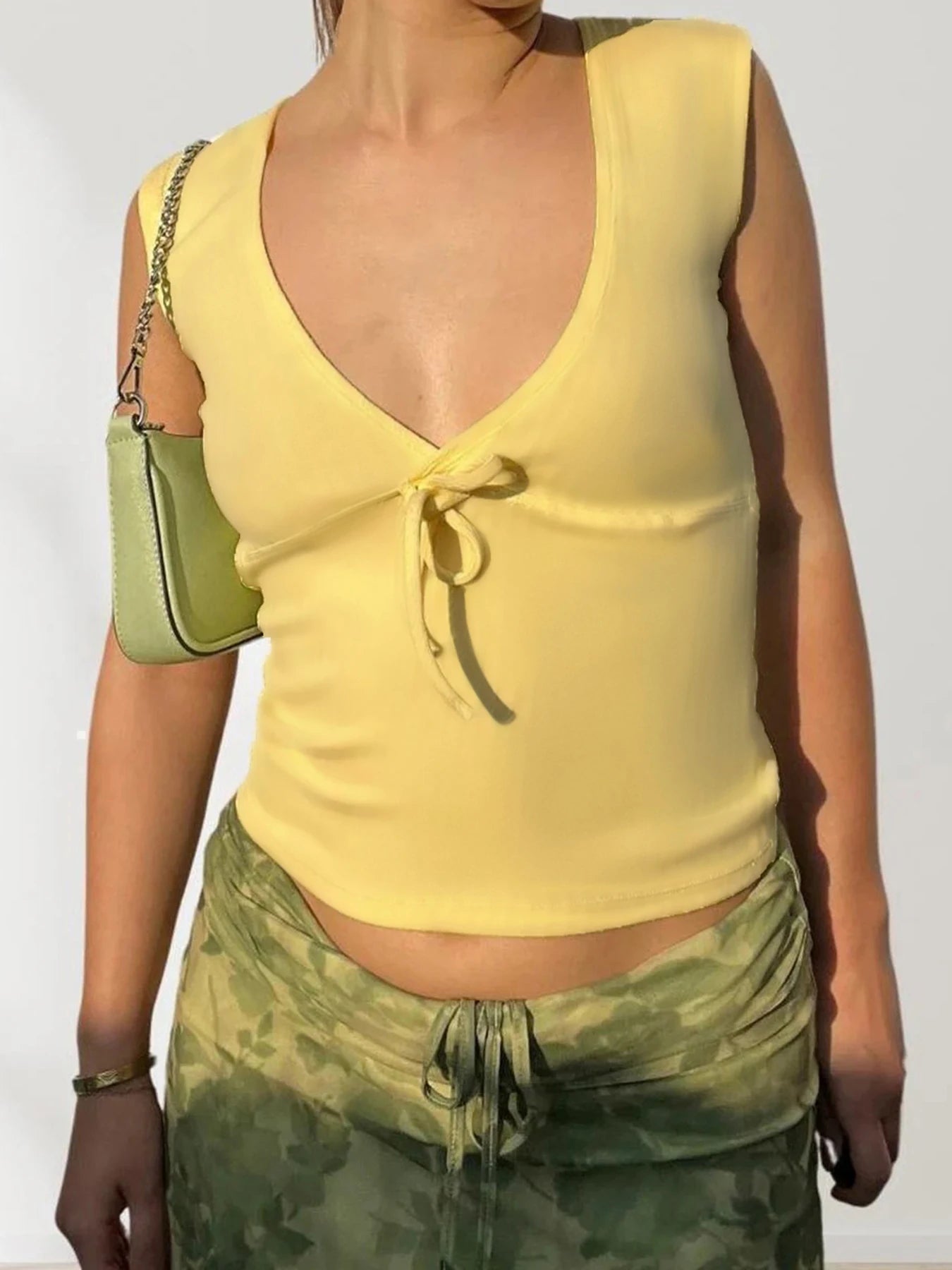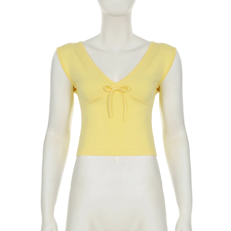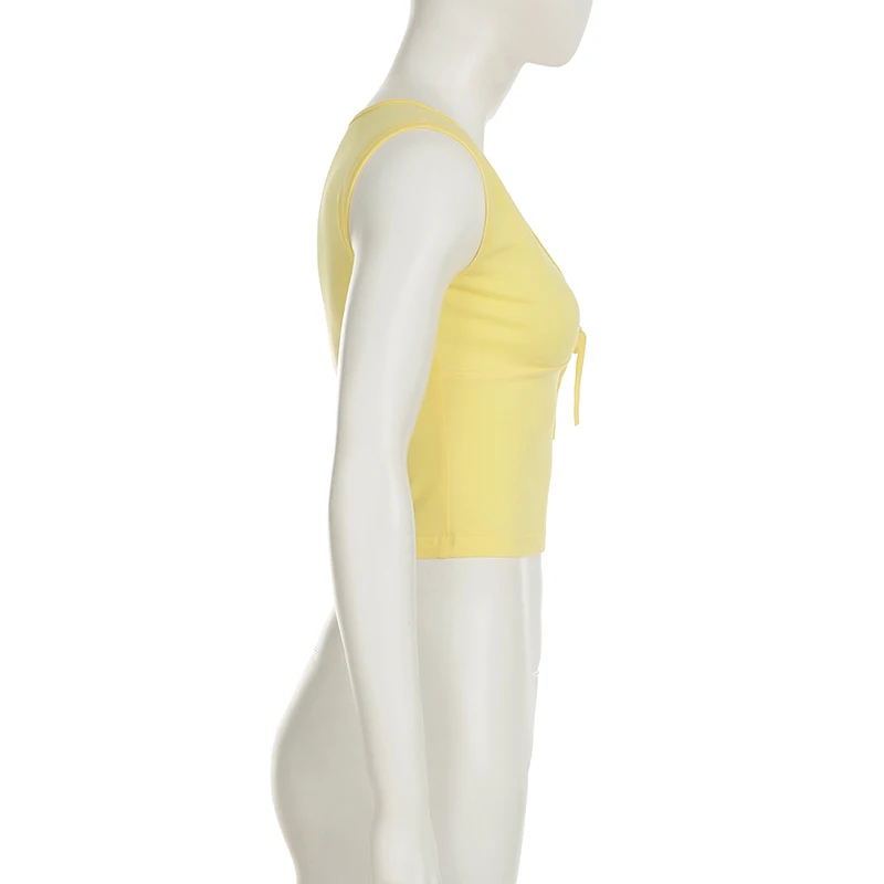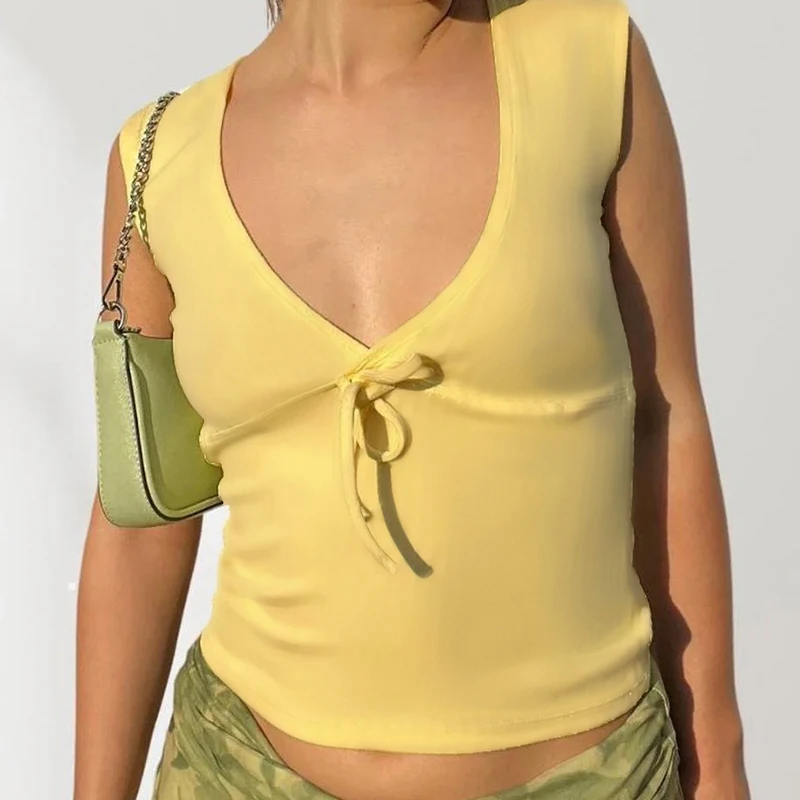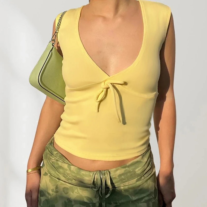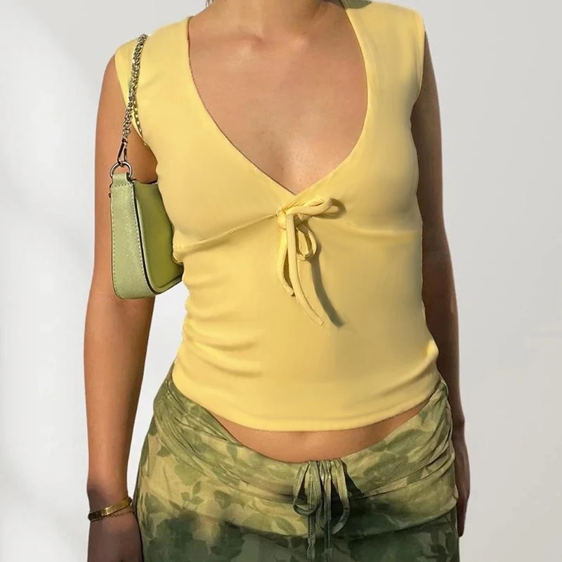 fashion Deep V-neck Solid Basic Casual Vest Chic Streetwear Fashion Bandage Sexy Top Hottie Slim All-match Vintage Clothes