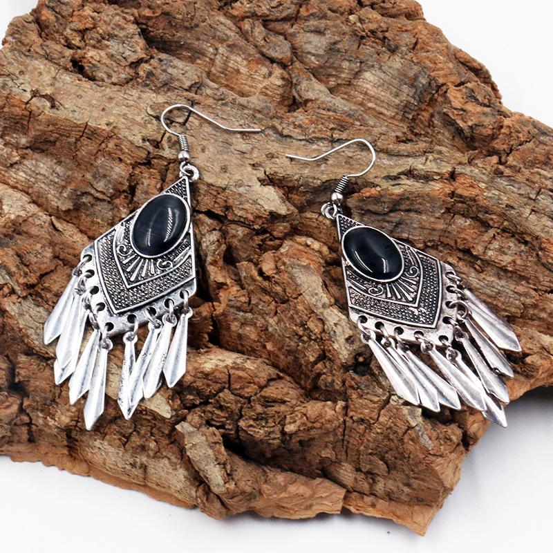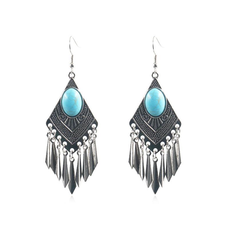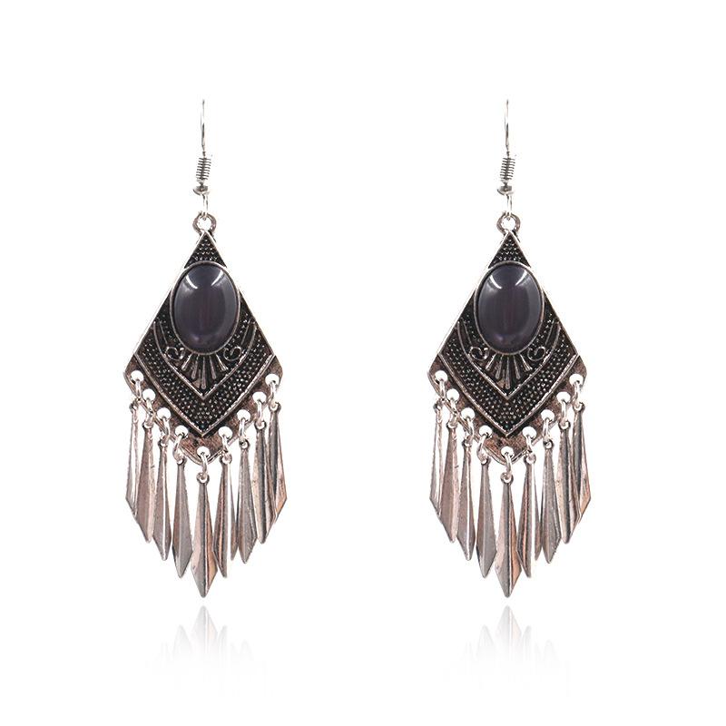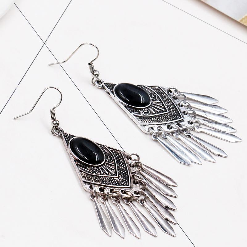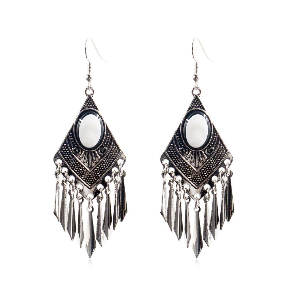 Fashion diamond shaped creative retro silver tassel Earrings Wholesale