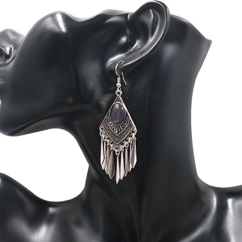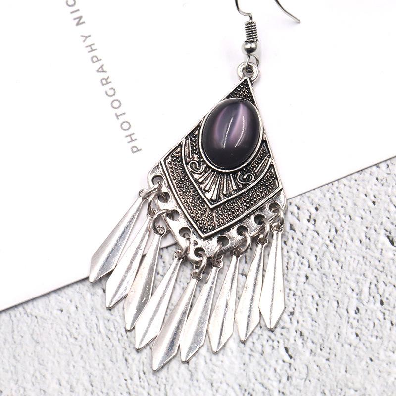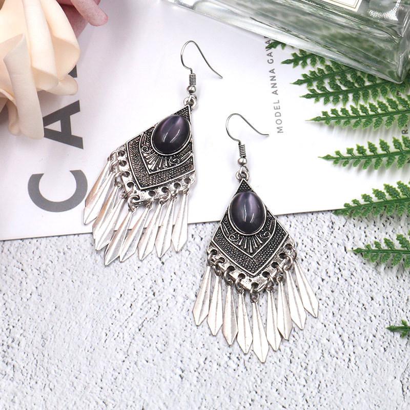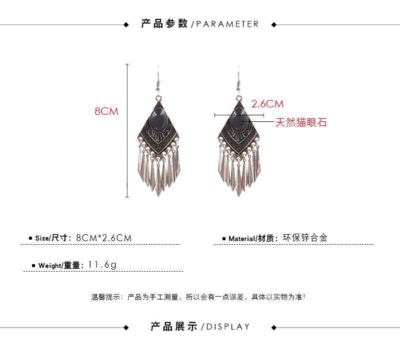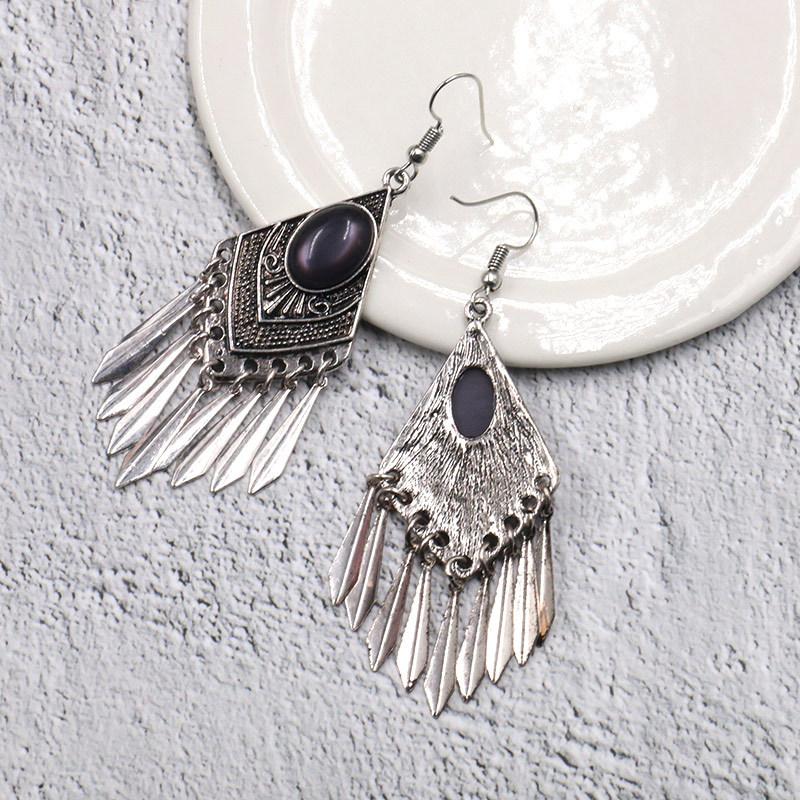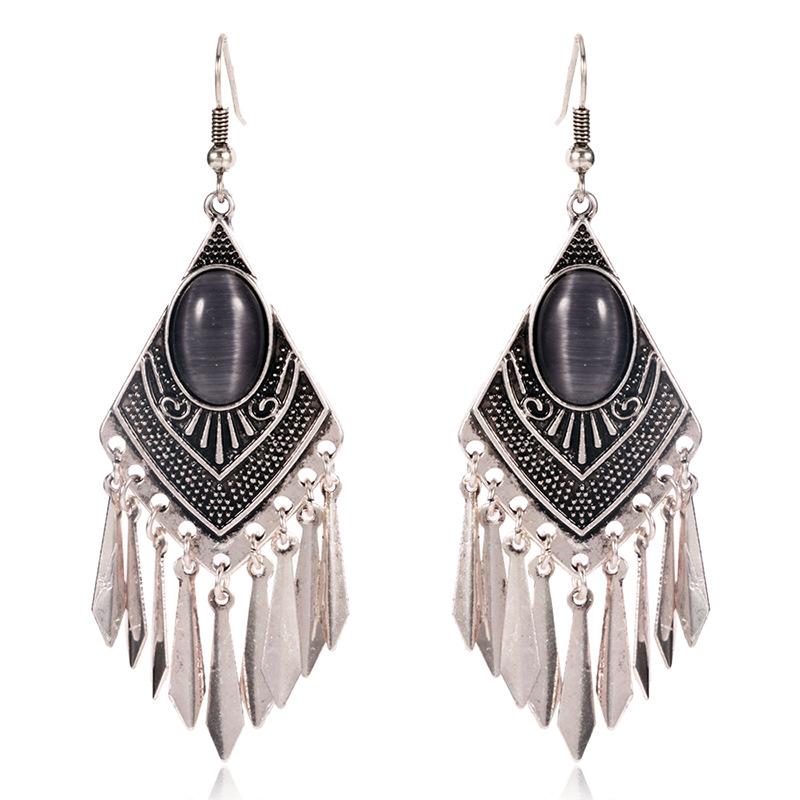 Fashion diamond shaped creative retro silver tassel Earrings Wholesale