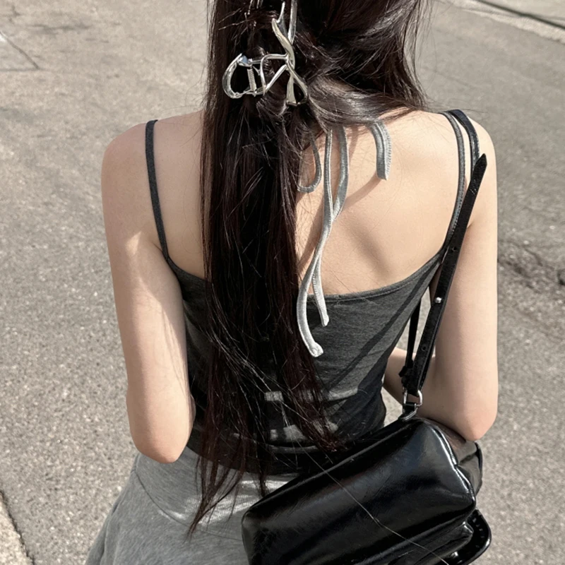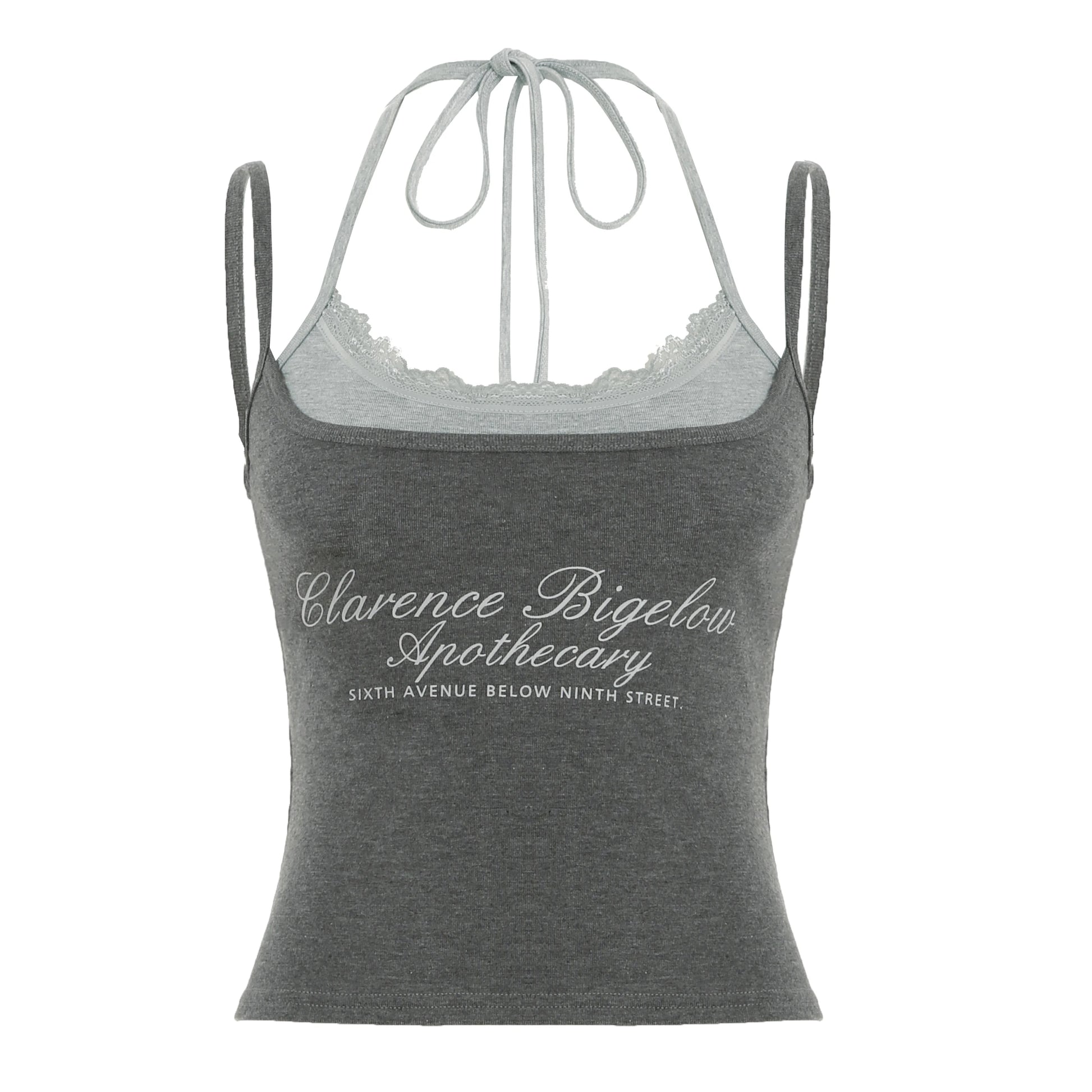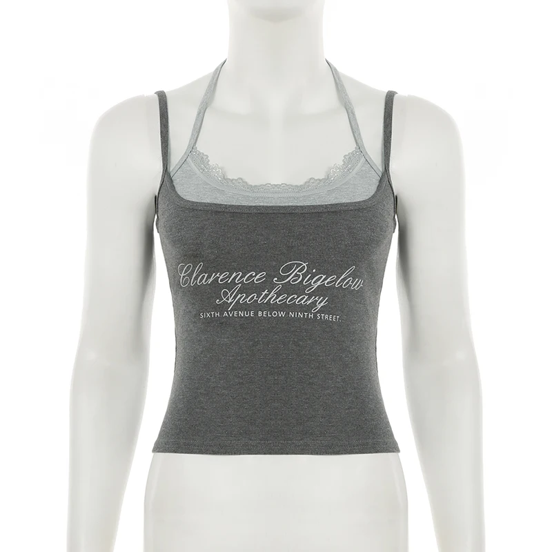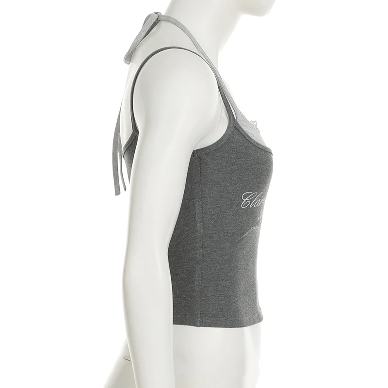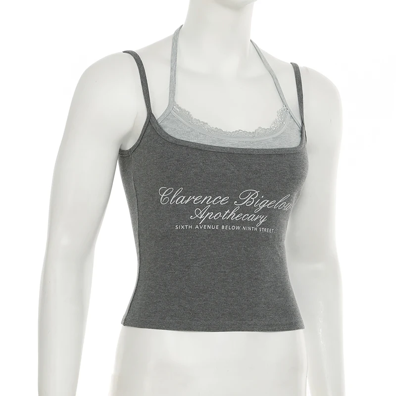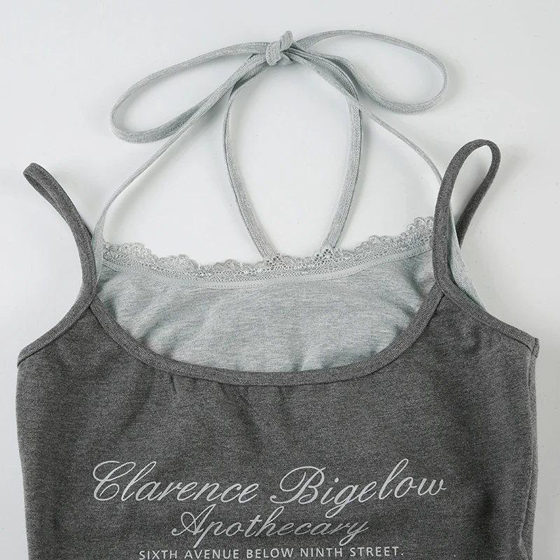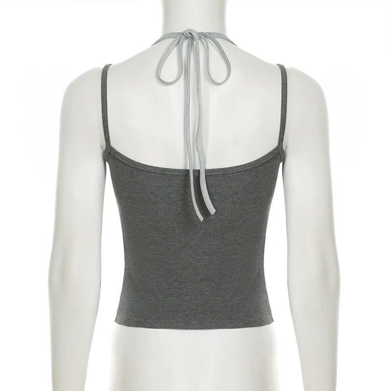 fashion Fake Two Pieces Color Contrast Camisole Backless Letter Print Slim Sexy Casual Slim Crop Top Basic Sweet Clothings