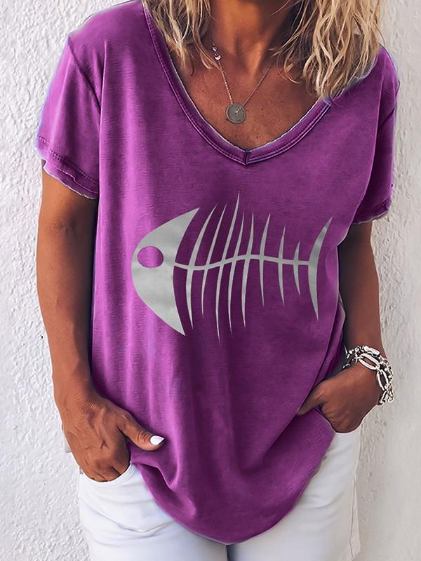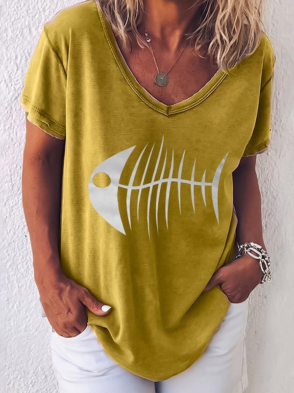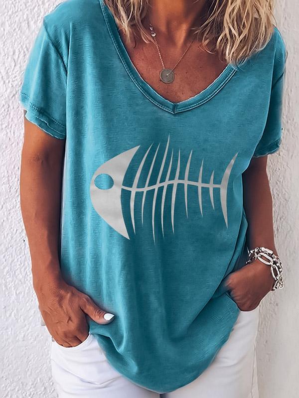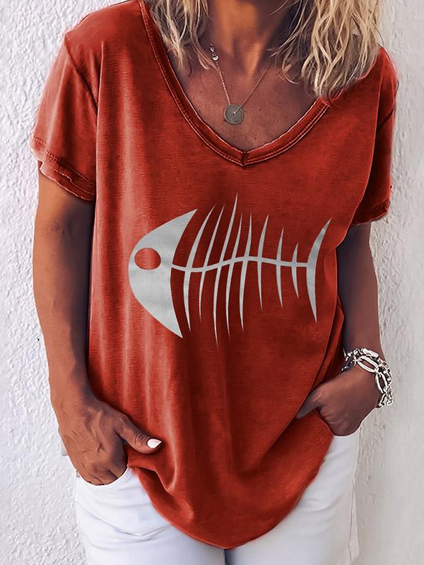 Fashion Fishbone Printed T-shirt