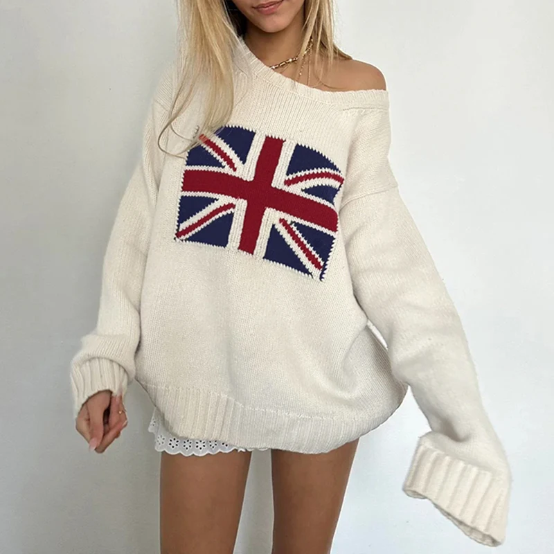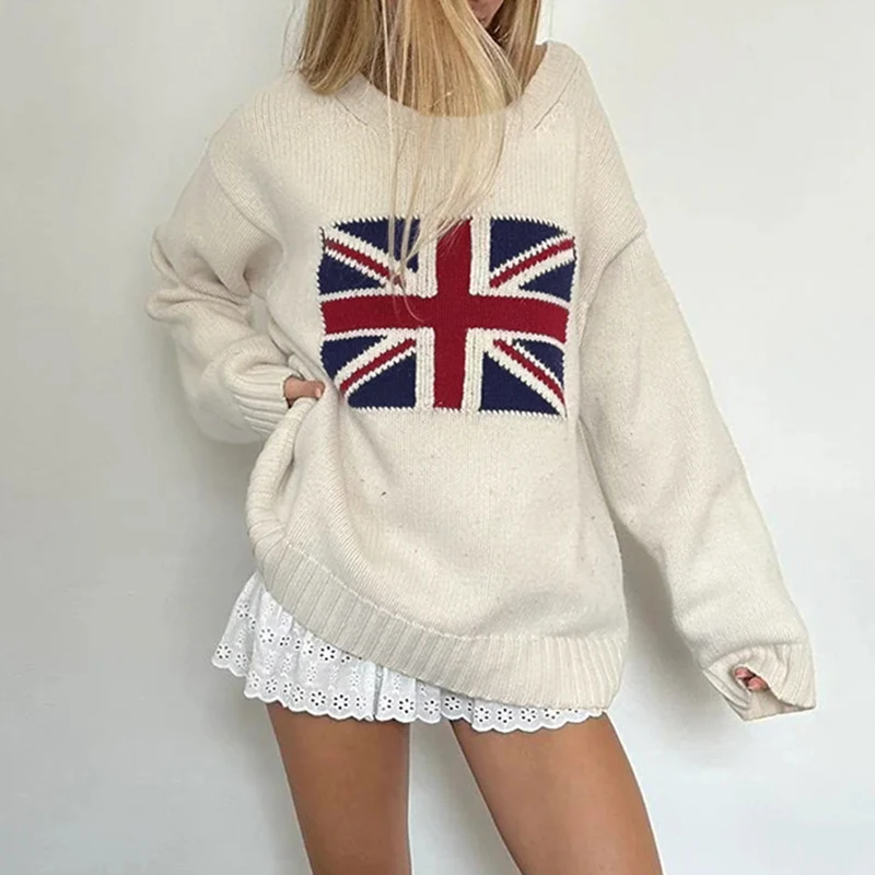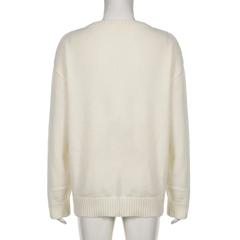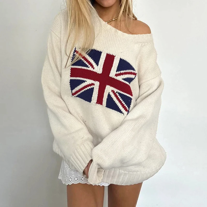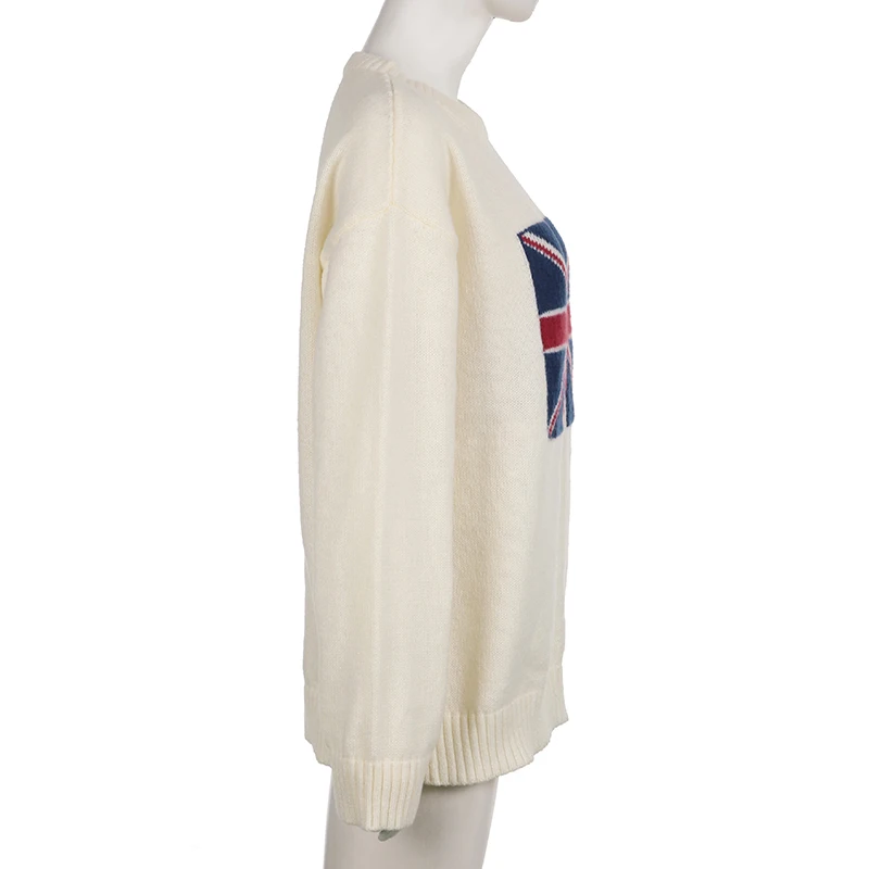 fashion Graphic Patchwork Knitted Sweaters Y2K Crewneck Fashion Loose Crochet Tops Autumn Vintage Casual Cute Pullovers