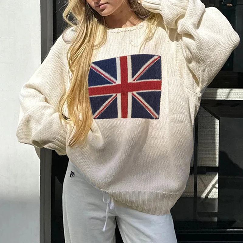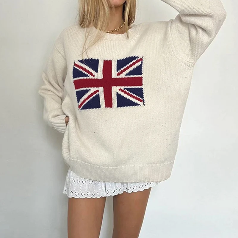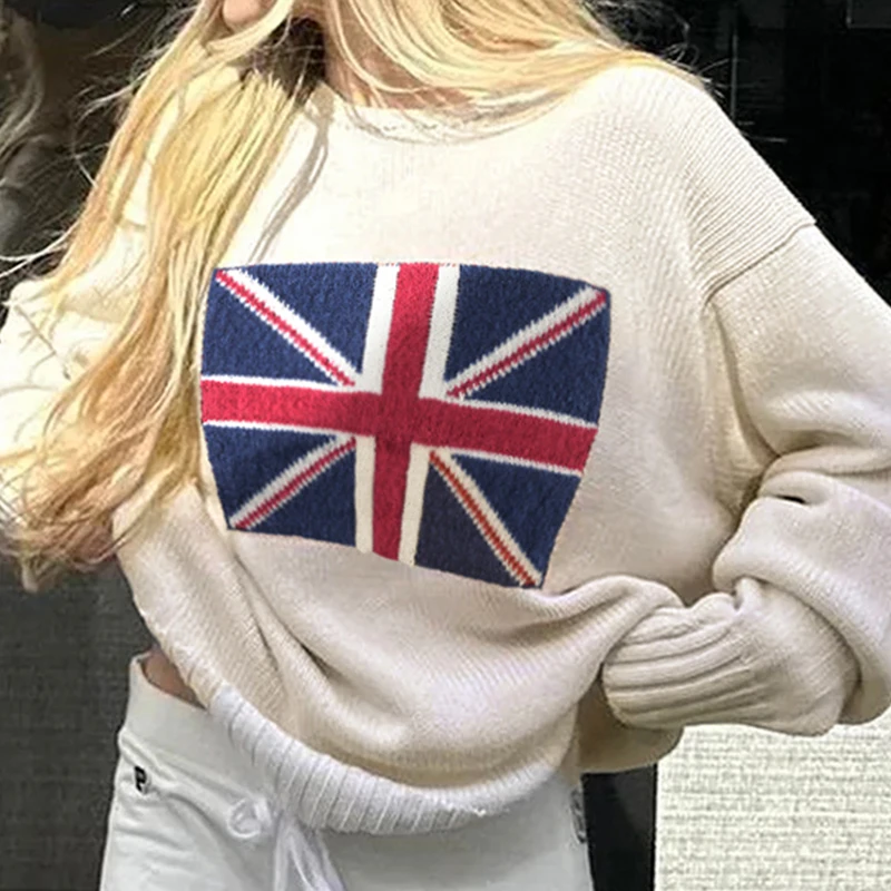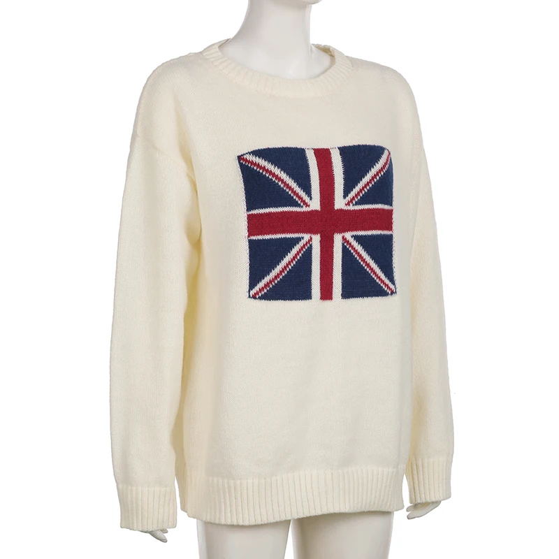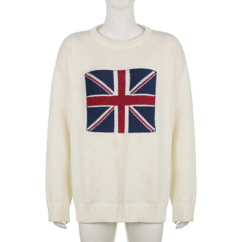 fashion Graphic Patchwork Knitted Sweaters Y2K Crewneck Fashion Loose Crochet Tops Autumn Vintage Casual Cute Pullovers