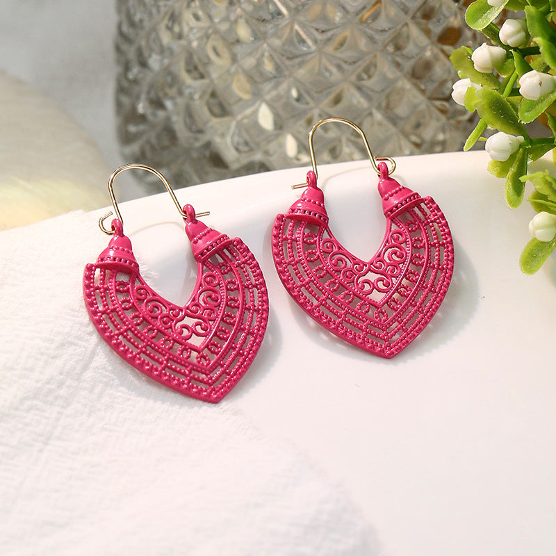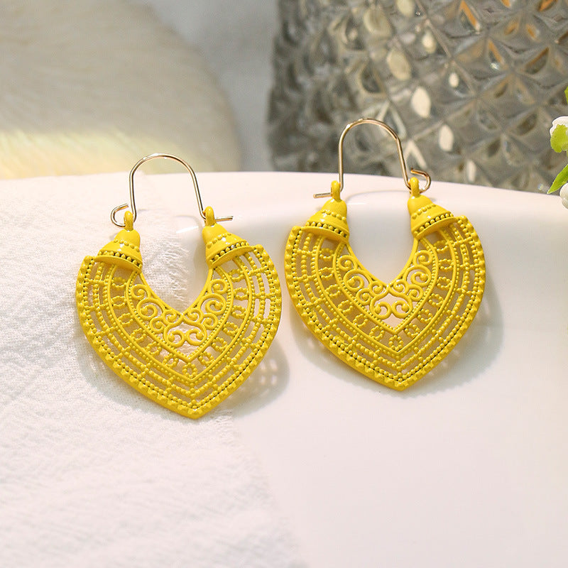 Fashion heart-shaped color hollow earrings