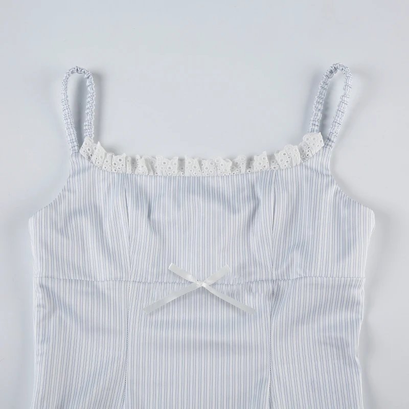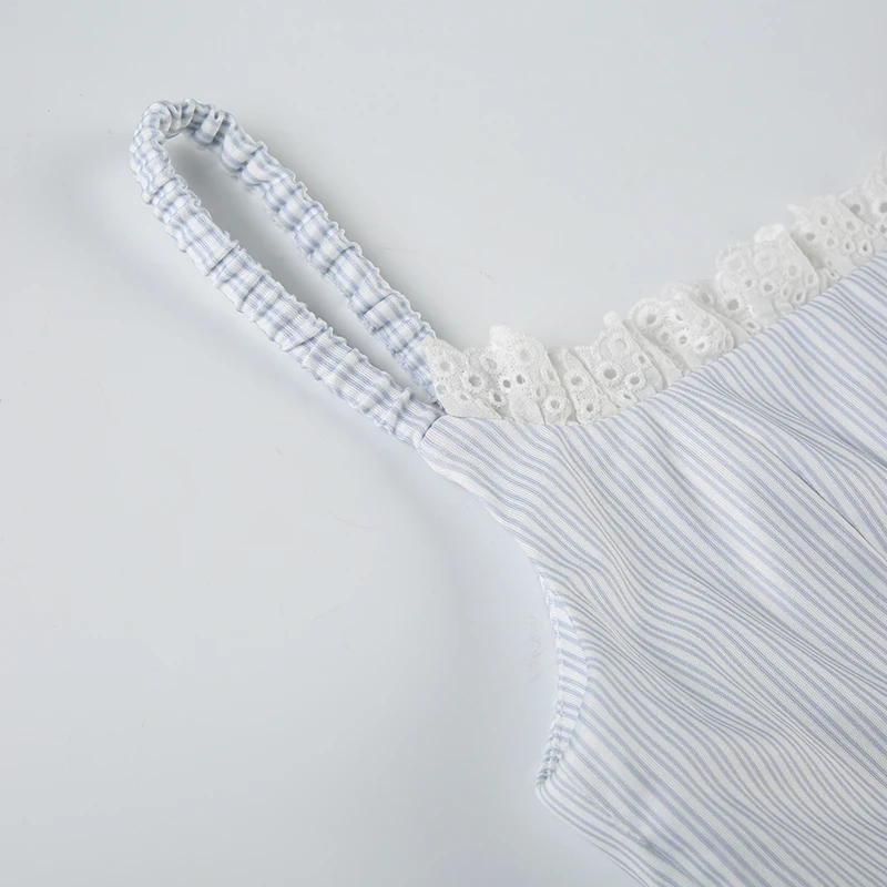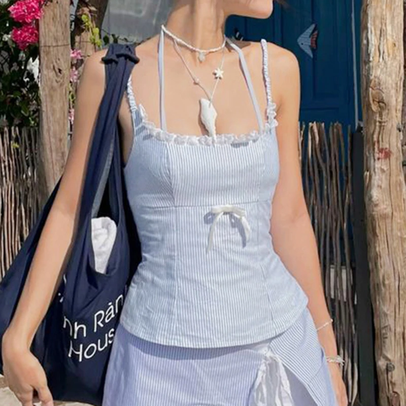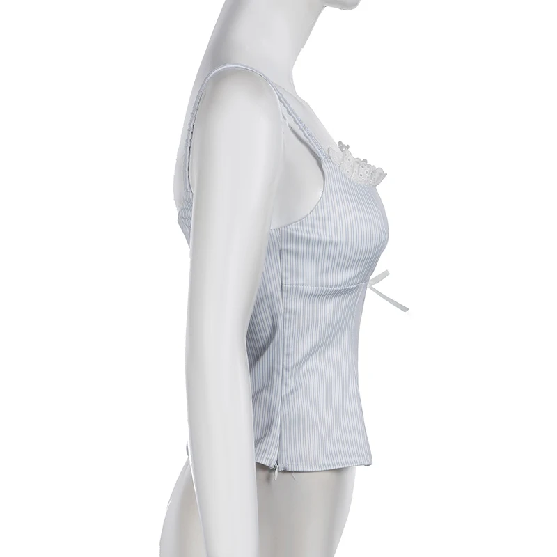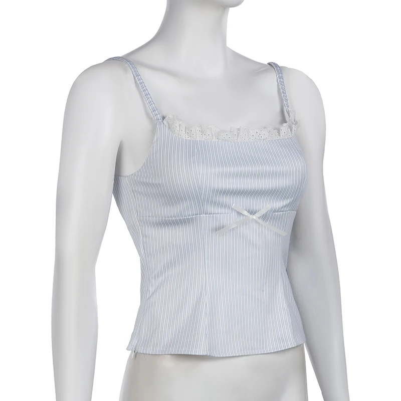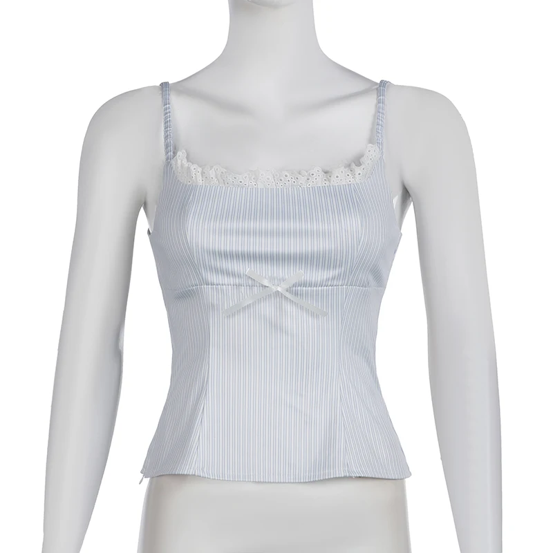 fashion Lace Patchwork Slim Stripe Camisole Sexy Chic Sweet Sweetwear Bodycon Bustiers All-match Vintage Y2k Tops