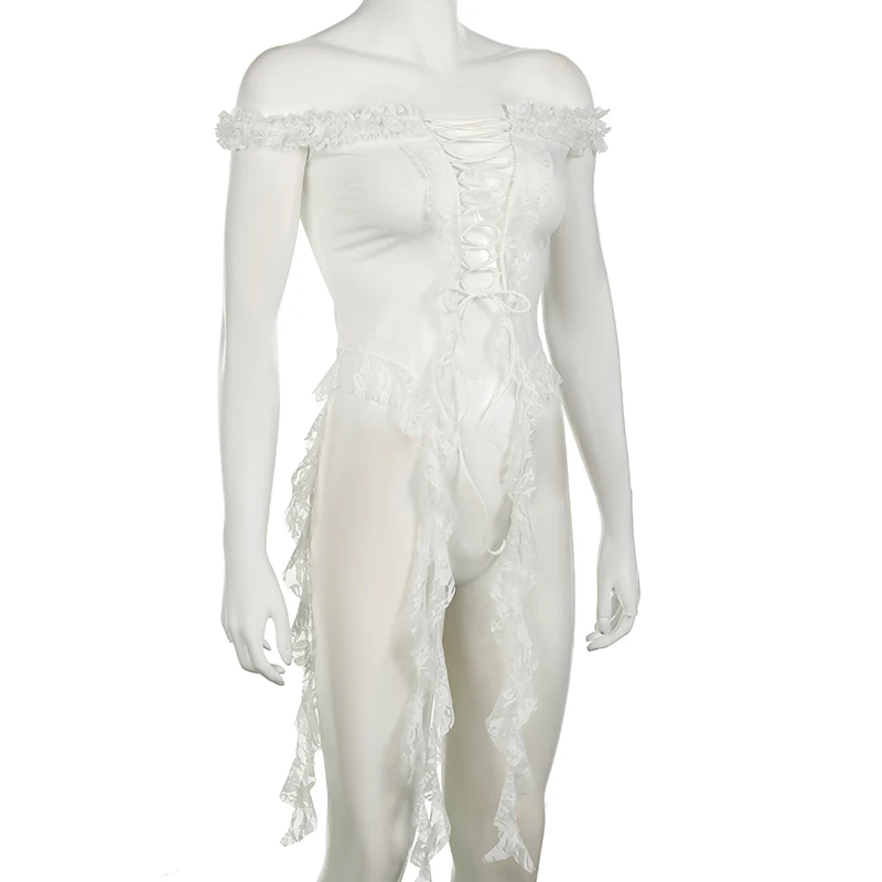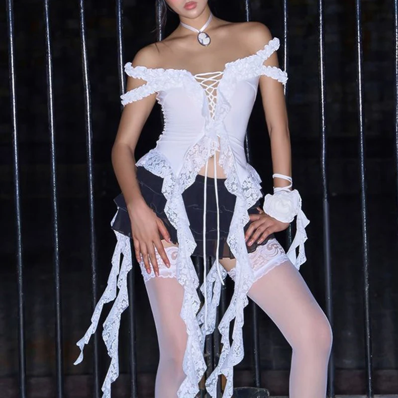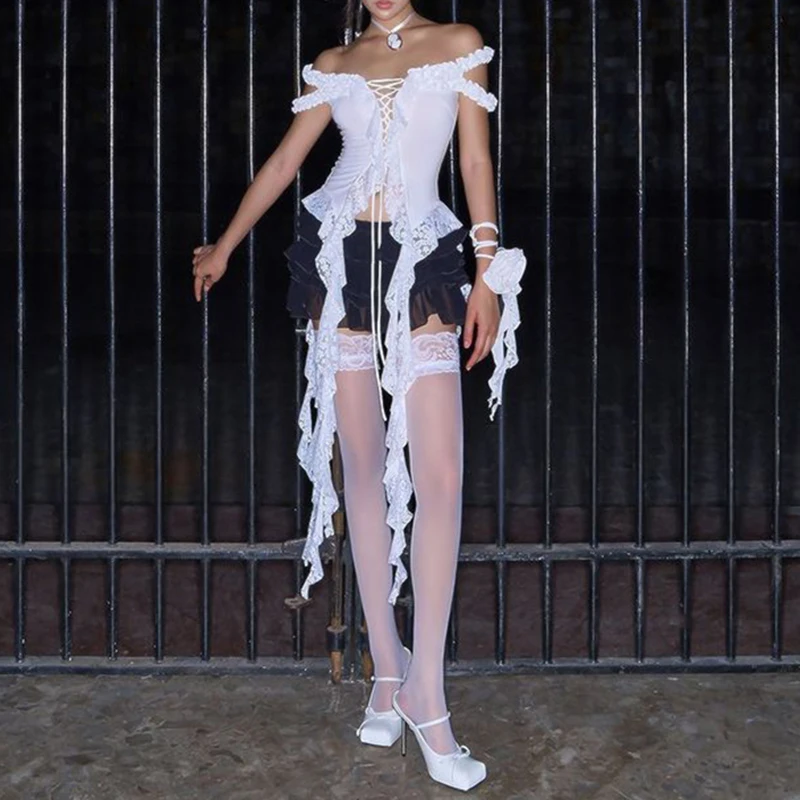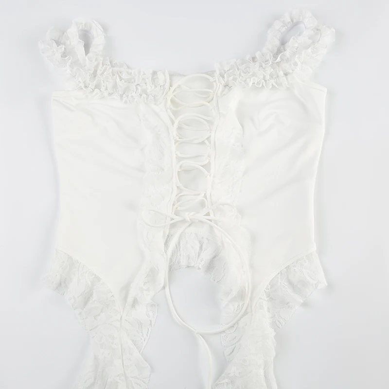 fashion Lace Patchwork Vacation Bandage Tops Sleeveless Sexy Chic Vintage Shirts Streetwear Slim Solid Bodycon Bustiers